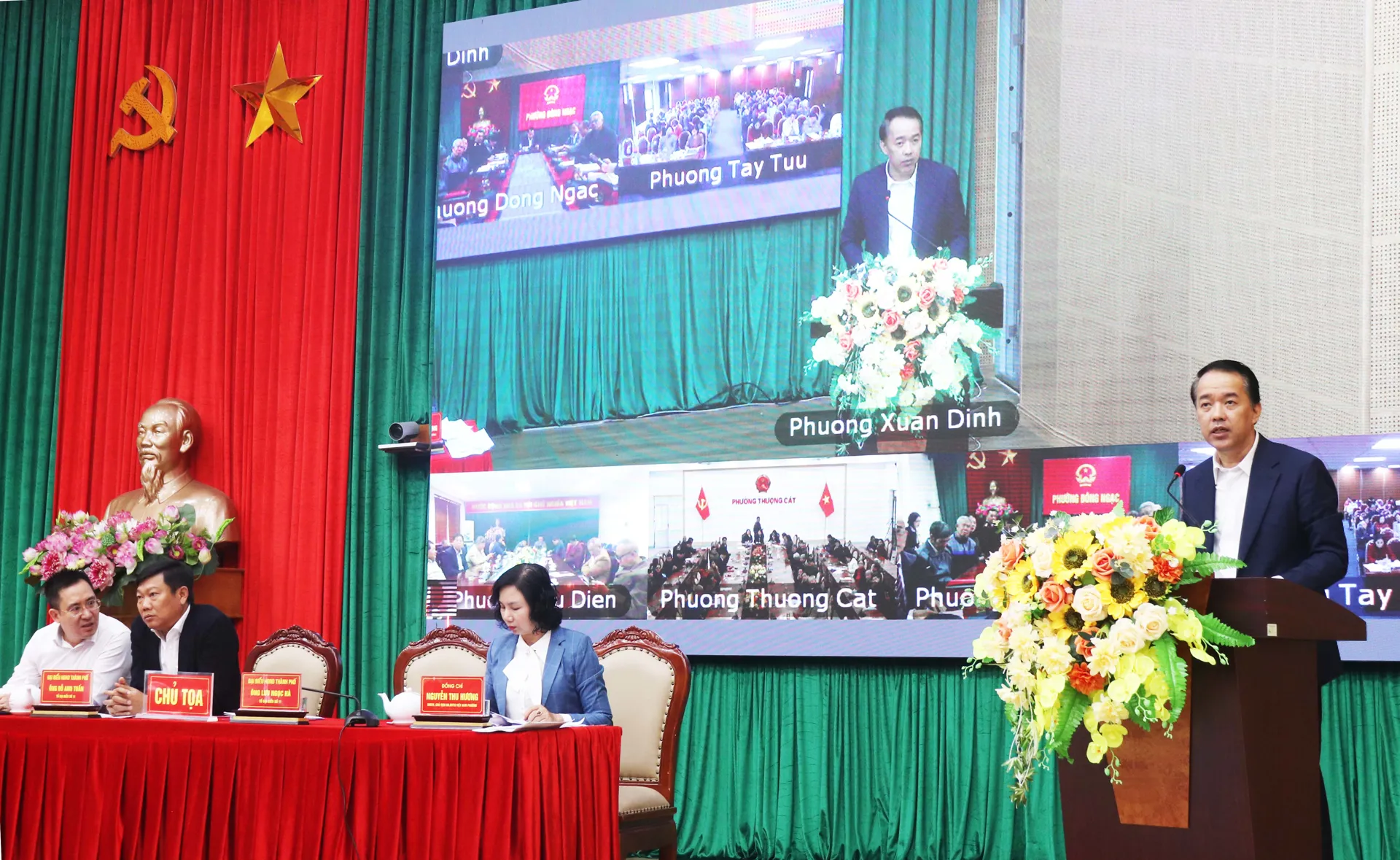 Kinhtedothi - Ngày 19/11, tại điểm cầu phường Xuân Đỉnh, các đại biểu HĐND TP Hà Nội thuộc Tổ đại biểu số 11 đã tiếp xúc cử tri 5 phường Xuân Đỉnh, Thượng Cát, Tây Tựu, Phú Diễn và Đông Ngạc trước kỳ họp cuối năm HĐND TP khóa XVI, nhiệm kỳ 2021 - 2026. Hội nghị được kết nối trực tuyến với 4 điểm cầu: Thượng Cát, Tây Tựu, Phú Diễn và Đông Ngạc.