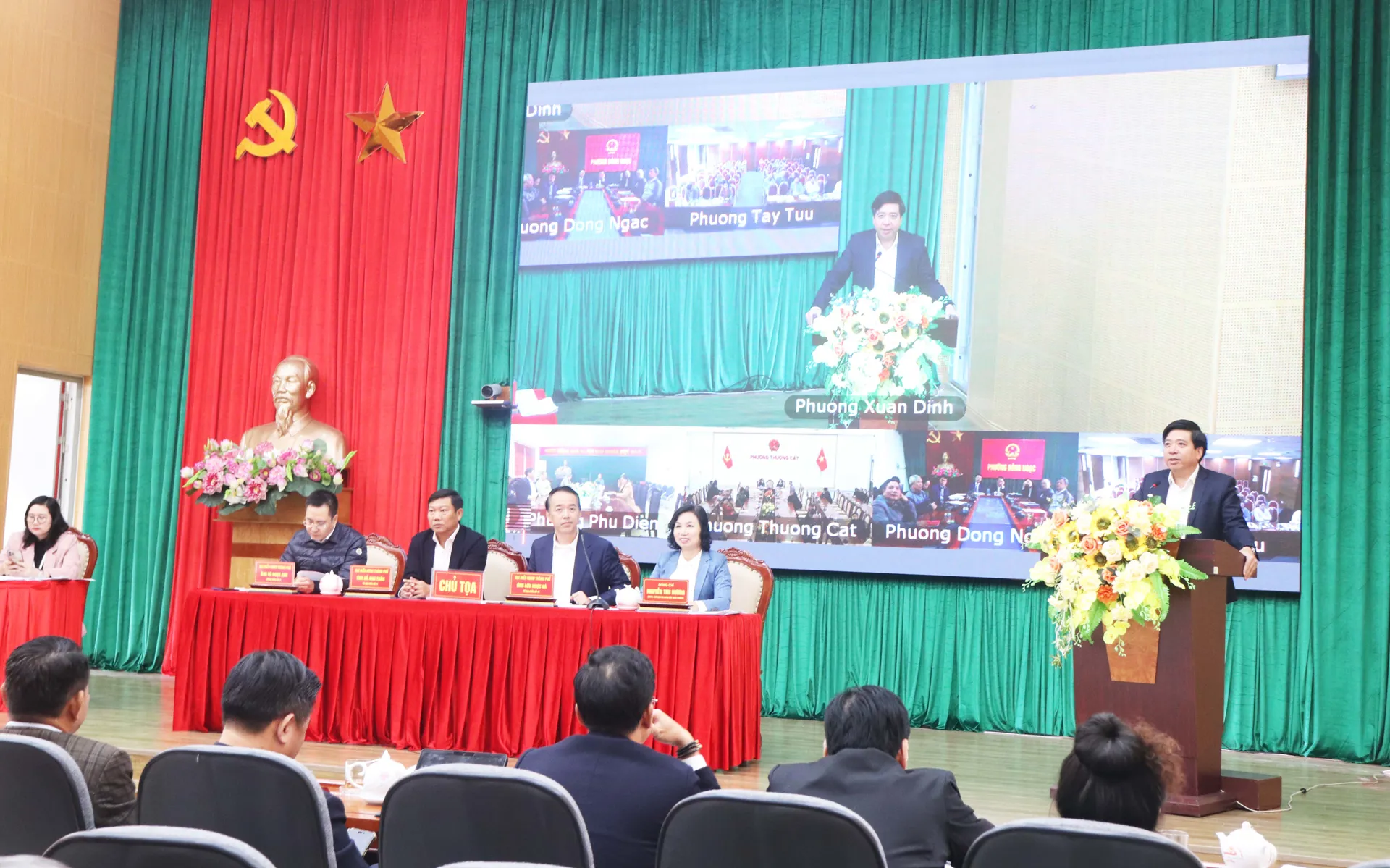 Hội nghị tiếp xúc cử tri được kết nối trực tuyến với 4 điểm cầu: Thượng Cát, Tây Tựu, Phú Diễn và Đông Ngạc.
