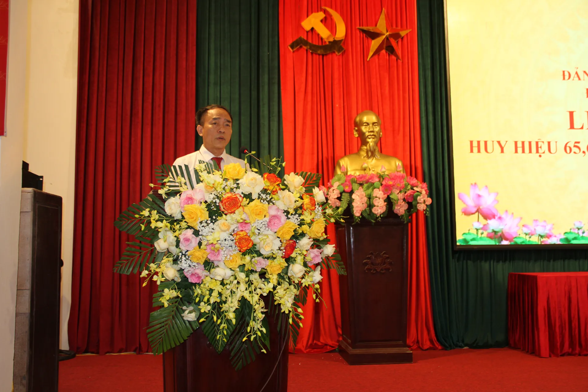 Thay mặt các đồng chí được nhận Huy hiệu Đảng, đảng viên Lê Thị Bờ (chi bộ thôn Vĩnh Lạc, đảng viên 60 năm tuổi đảng) đã phát biểu cảm ơn sự quan tâm của Đảng, Nhà nước đã ghi nhận những cống hiến của các đảng viên trong suốt những năm qua.