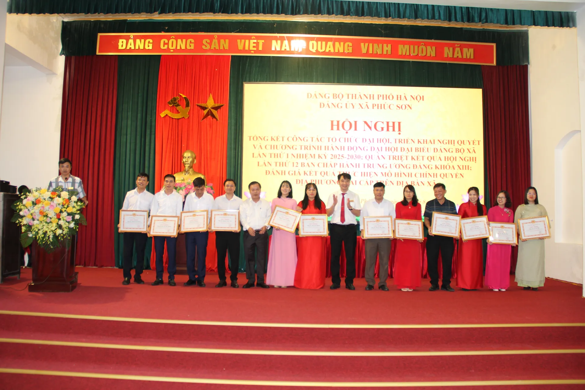 Tại Hội nghị, Ban Thường vụ Đảng ủy xã Phúc Sơn đã tặng Giấy khen cho 5 tập thể và 13 cá nhân có thành tích trong công tác tổ chức Đại hội đại biểu Đảng bộ xã Phúc Sơn lần thứ I, nhiệm kỳ 2025 - 2030.