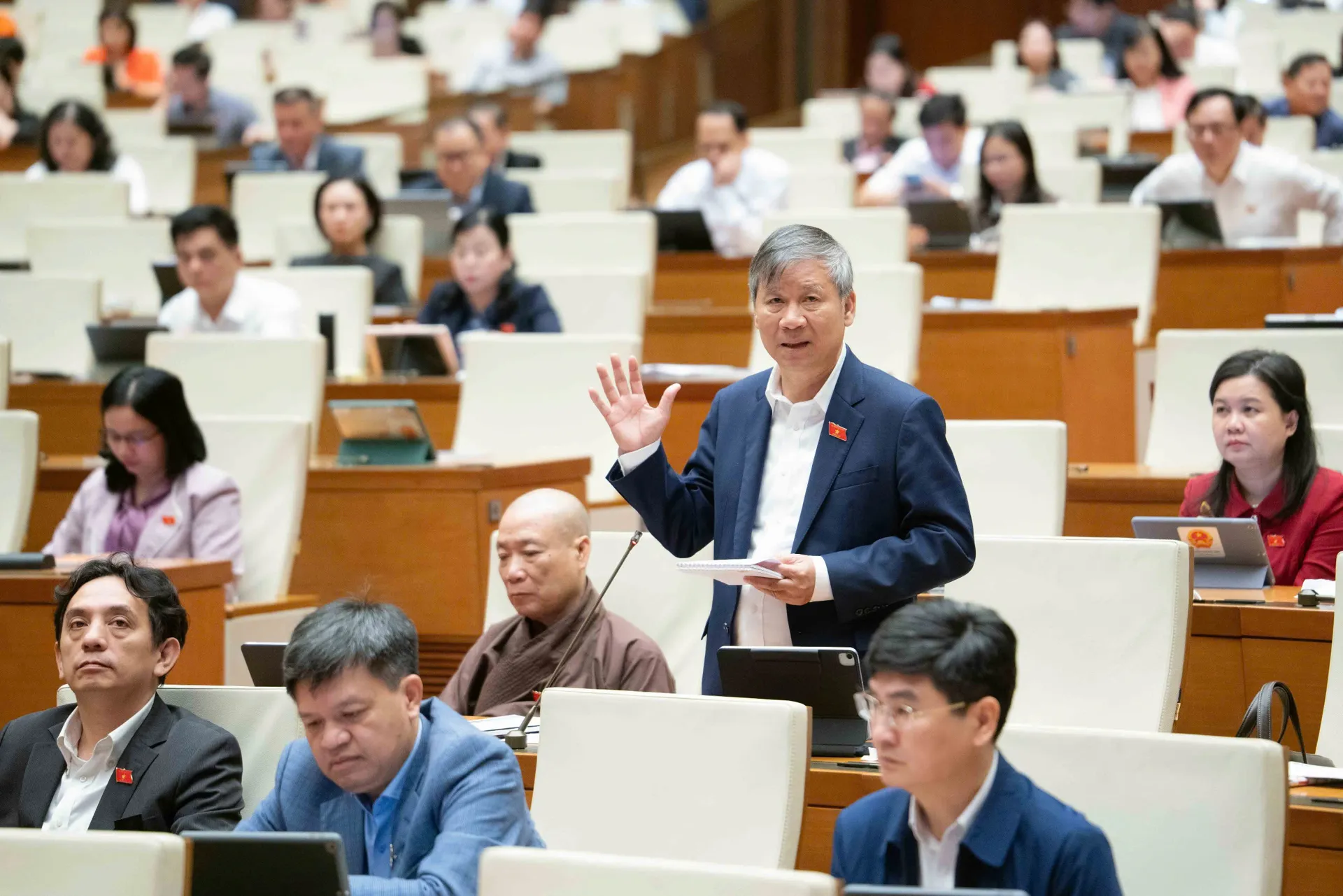 Đại biểu Quốc hội Tạ Đình Thi (Đoàn đại biểu Quốc hội TP Hà Nội) nhấn mạnh, việc xây dựng đội ngũ viên chức chất lượng cao là nhiệm vụ trọng tâm để đáp ứng yêu cầu phát triển đất nước trong giai đoạn mới. Ảnh: Quochoi.vn
