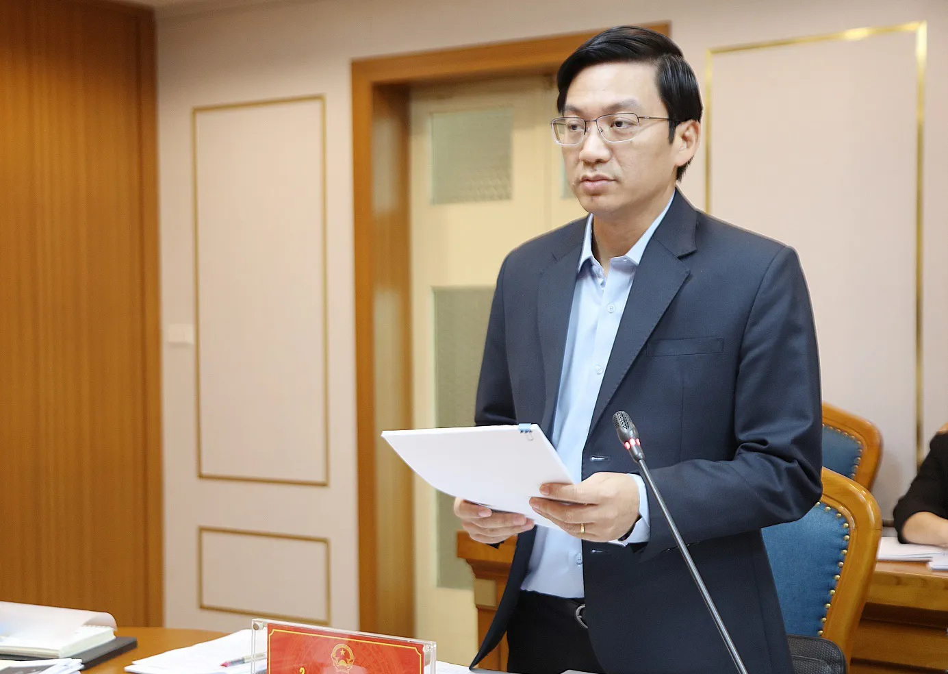 Giám đốc Sở Xây dựng Phú Thọ Nguyễn Xuân Quang báo cáo phương án quy hoạch phát triển giao thông vận tải trên địa bàn tỉnh. Ảnh: Cổng TTĐT Phú Thọ