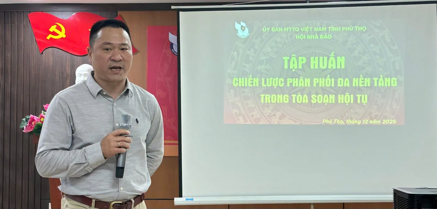 Kinhtedothi - Ngày 25/12, Hội Nhà báo tỉnh Phú Thọ tổ chức lớp tập huấn chuyên đề “Giải pháp nâng cao năng lực quản trị tòa soạn hội tụ” và “Chiến lược phân phối đa nền tảng trong tòa soạn hội tụ” nhằm trang bị kiến thức, kỹ năng mới cho đội ngũ những người làm báo trong bối cảnh chuyển đổi số mạnh mẽ hiện nay.