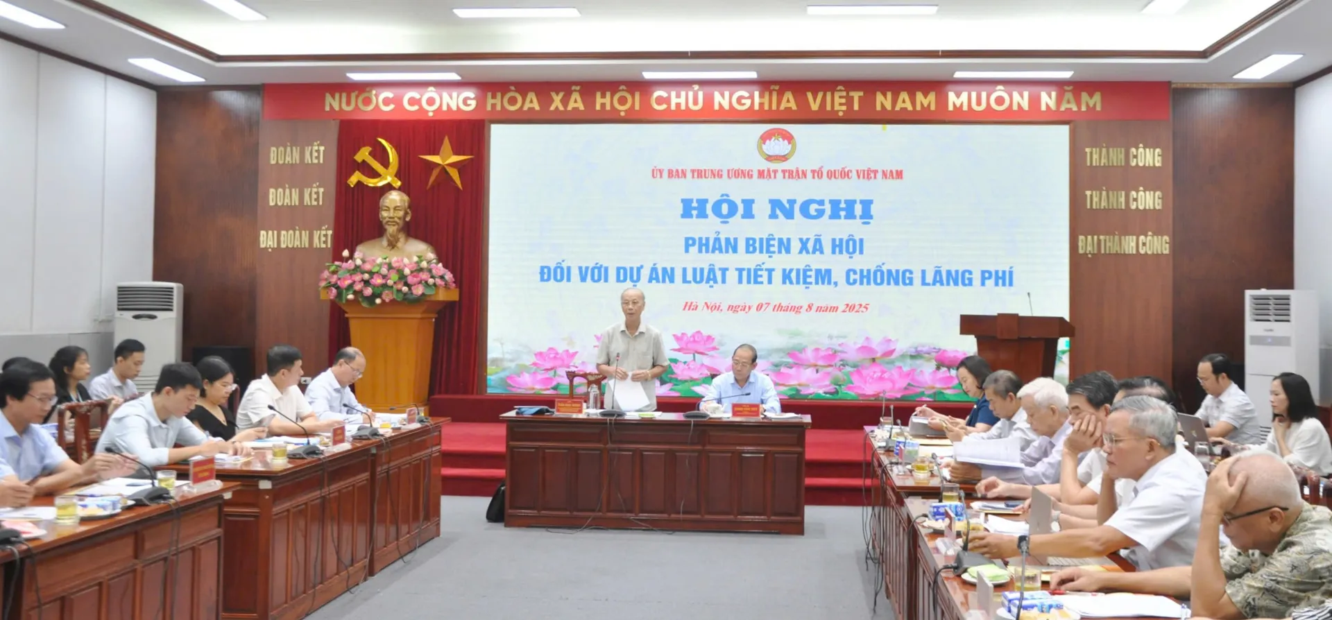 Sáng nay, 7/8, tại Hà Nội, Ủy ban T.Ư MTTQ Việt Nam tổ chức Hội nghị phản biện xã hội đối với dự án Luật Tiết kiệm, chống lãng phí.