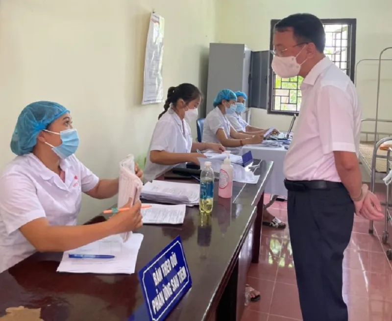 Bí thư Huyện ủy Thạch Thất Trần Đình Cảnh kiểm tra công tác tiêm vaccine trên địa bàn.
