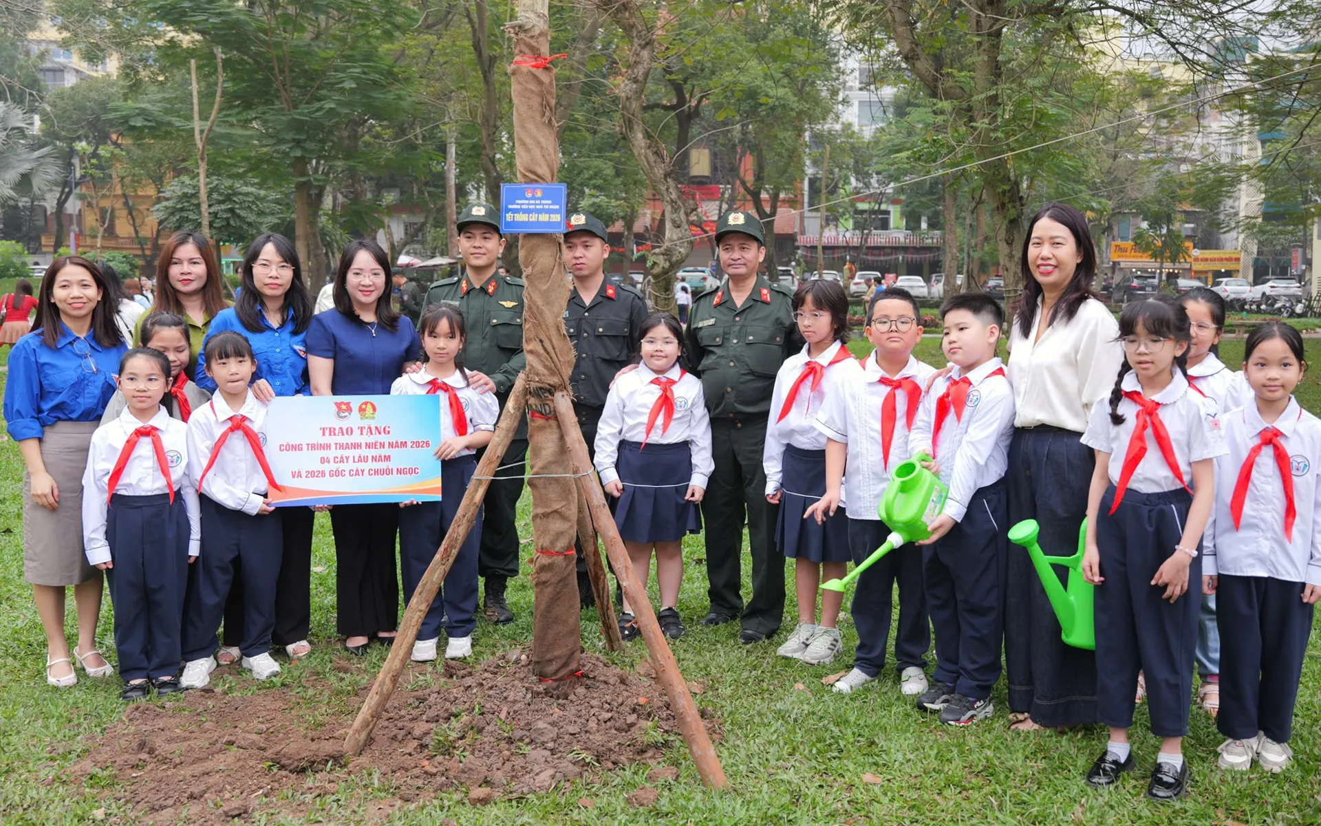 Lãnh đạo phường Hai Bà Trưng tham gia trồng cây, trao tặng Công trình thanh niên năm 2026: 4 cây lâu năm và 2026 gốc cây chuỗi ngọc