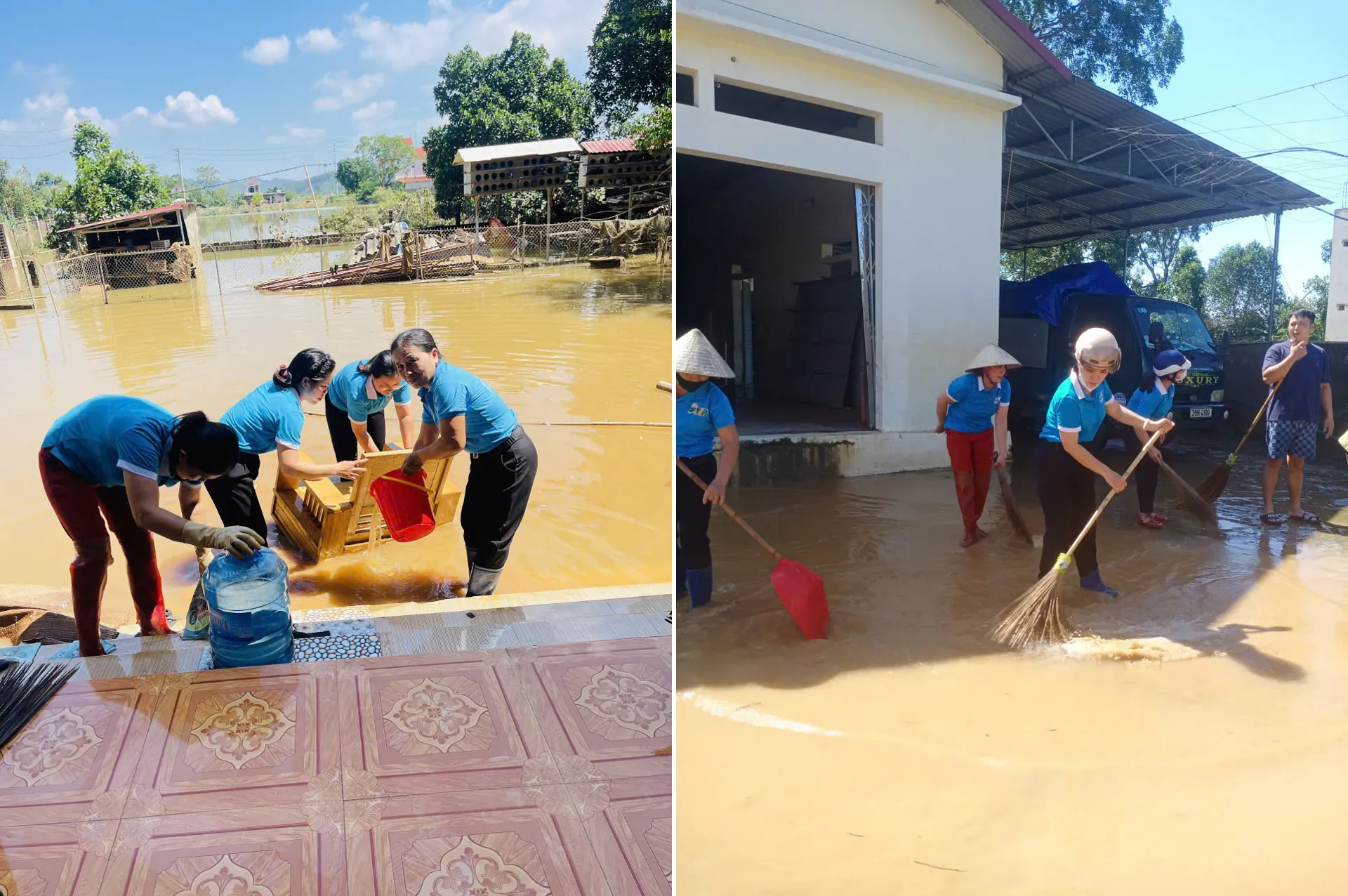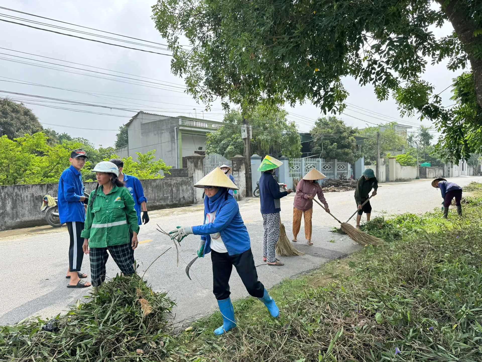 Không khí khẩn trương dọn dẹp giúp đường làng, ngõ xóm sớm thông thoáng trở lại.Nước vừa rút, bà con và đoàn viên thanh niên lập tức bắt tay vào dọn dẹp, tinh thần đoàn kết lan tỏa khắp thôn xóm.