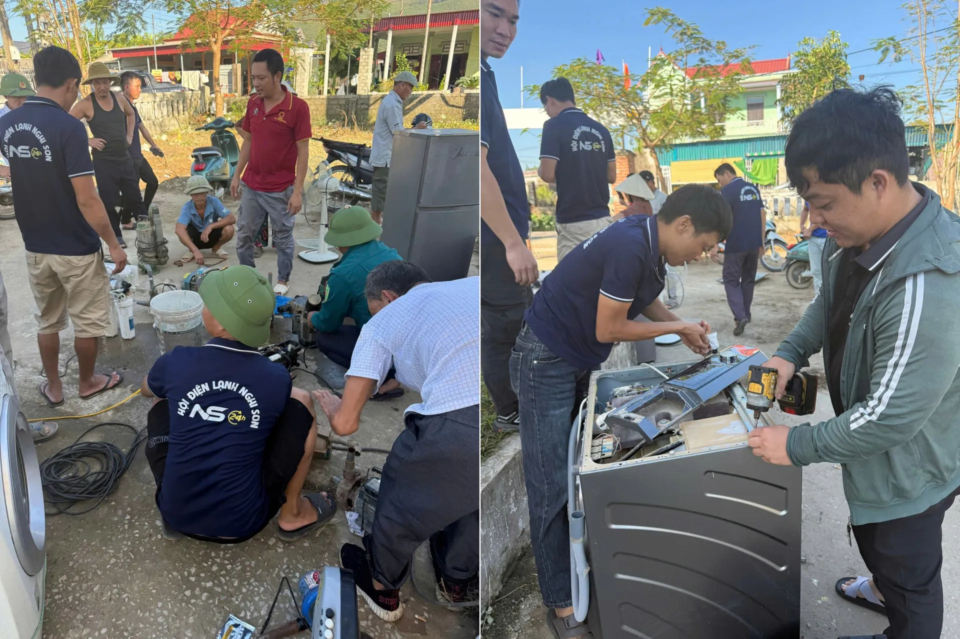 Khẩn trương khắc phục hậu quả thiên tai để người dân sớm ổn định cuộc sống.Tinh thần đoàn kết thể hiện rõ trong công tác dọn dẹp ngay sau khi nước rút.Hội điện lạnh Nghi Sơn sửa chữa miễn phí các thiết bị điện cho Nhân dân tại xã Các Sơn