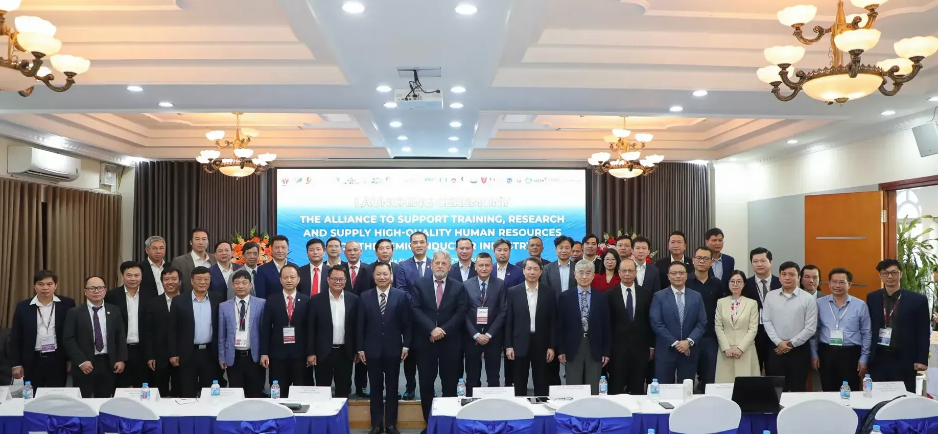 Nhận thức rõ vai trò chiến lược của ngành công nghệ bán dẫn trong mọi lĩnh vực công nghệ cao, trên nền tảng liên minh 5 cơ sở giáo dục đại học hướng đến phát triển nguồn nhân lực chất lượng cao ngành công nghiệp chip bán dẫn do Bộ GD&ĐT chủ trì thành lập năm 2023, ĐHQGHN đã khởi xướng mở rộng và thành lập Liên minh bán dẫn. Mục tiêu của liên minh là kết nối chặt chẽ giữa đào tạo, nghiên cứu và doanh nghiệp, hình thành một hệ sinh thái mở, thúc đẩy phát triển nguồn nhân lực chất lượng cao và các sản phẩm bán dẫn “Make in Vietnam”.