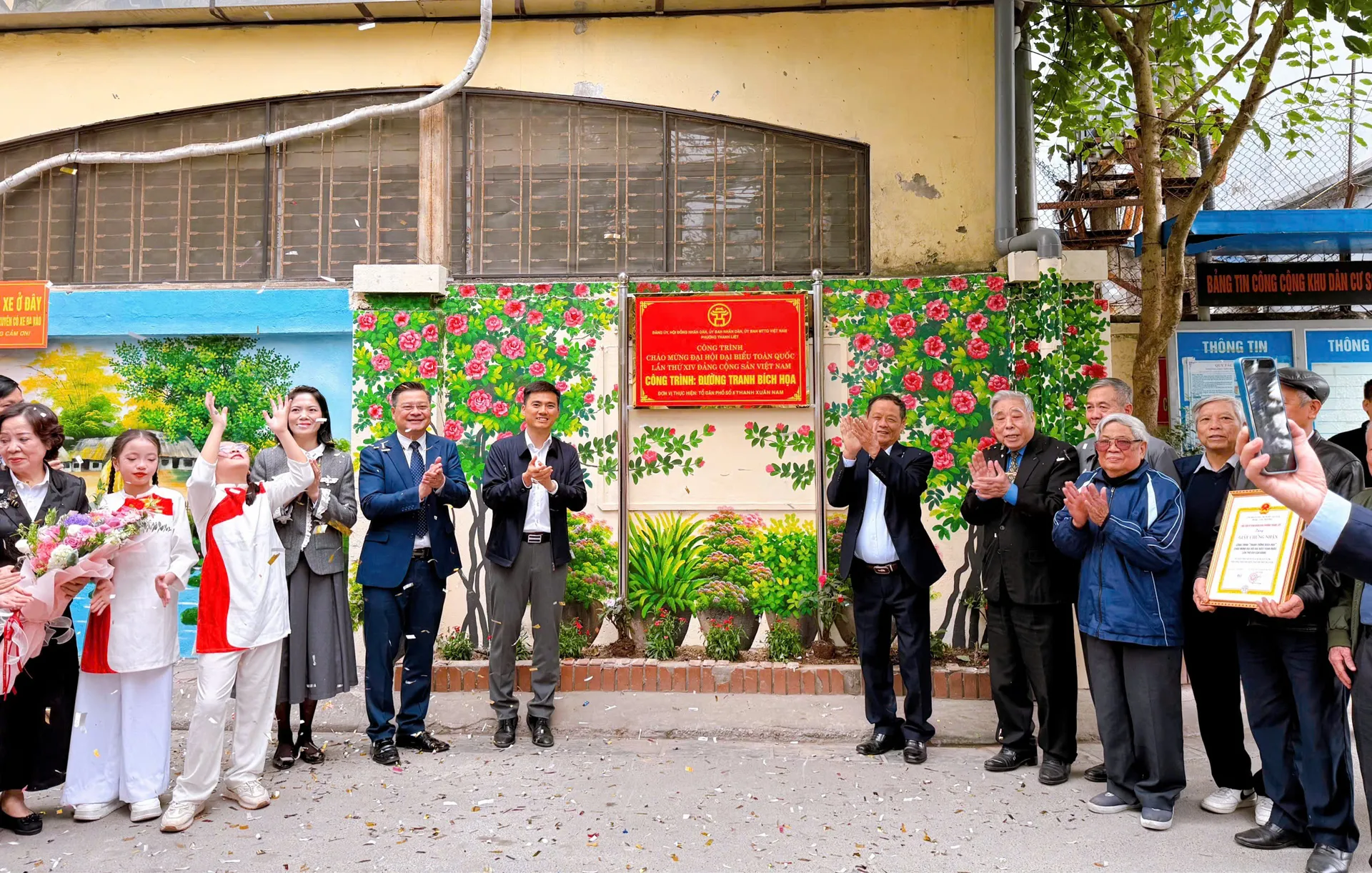 Nhân dịp này, UBND phường Thanh Liệt đã trao chứng nhận công trình “Tranh tường bích họa” chào mừng Đại hội đại biểu toàn quốc lần thứ XIV của Đảng và khen thưởng Nhân dân, cán bộ Tổ dân phố số 8 Thanh Xuân Nam có thành tích xuất sắc trong phong trào thi đua lập thành tích chào mừng Đại hội đại biểu toàn quốc lần thứ XIV của Đảng.