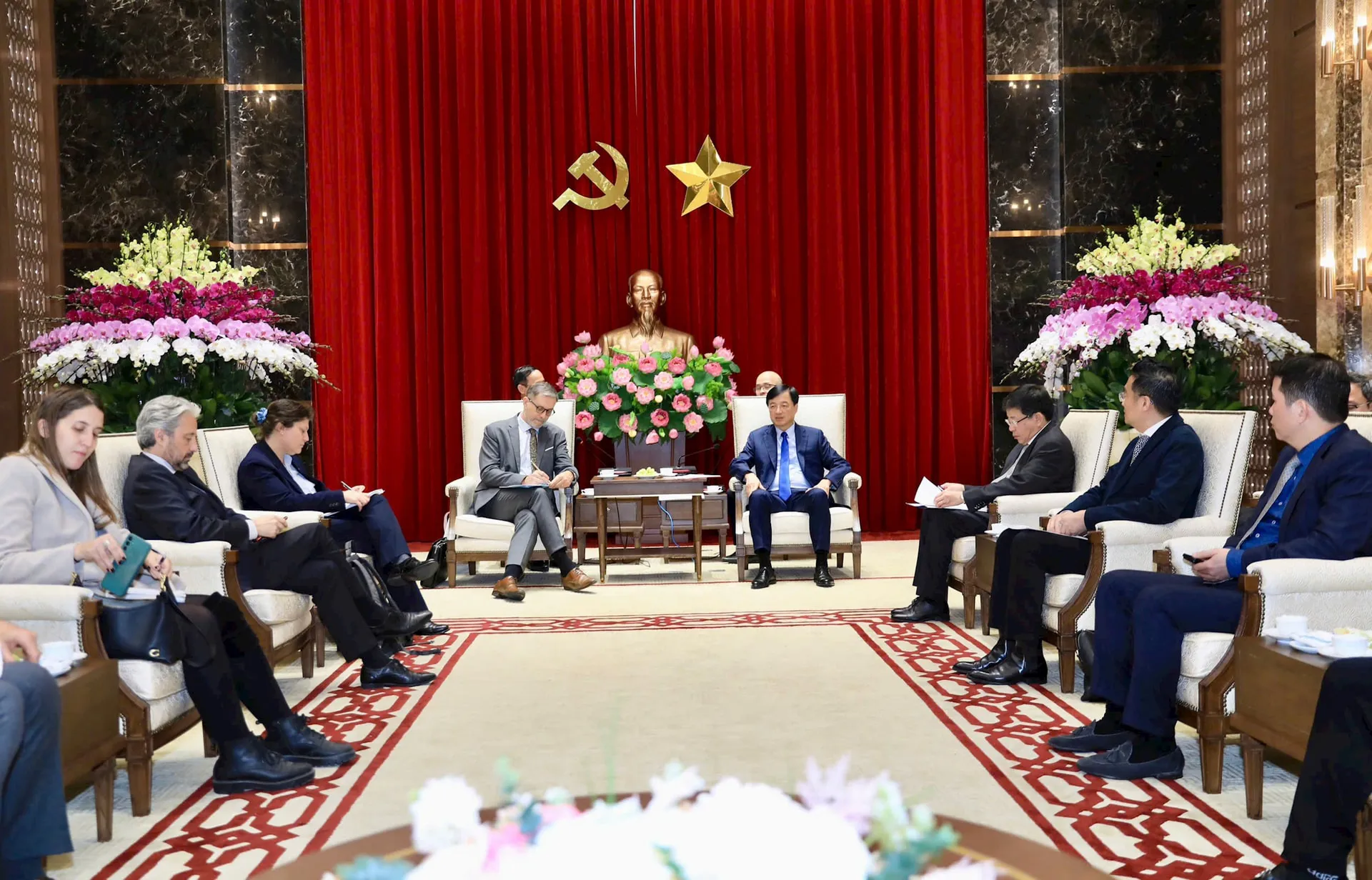 Kinhtedothi - Chiều 12/2, Ủy viên Bộ Chính trị, Bí thư Thành ủy Hà Nội Nguyễn Duy Ngọc đã tiếp và làm việc với Đại sứ Pháp tại Việt Nam Olivier Brochet.