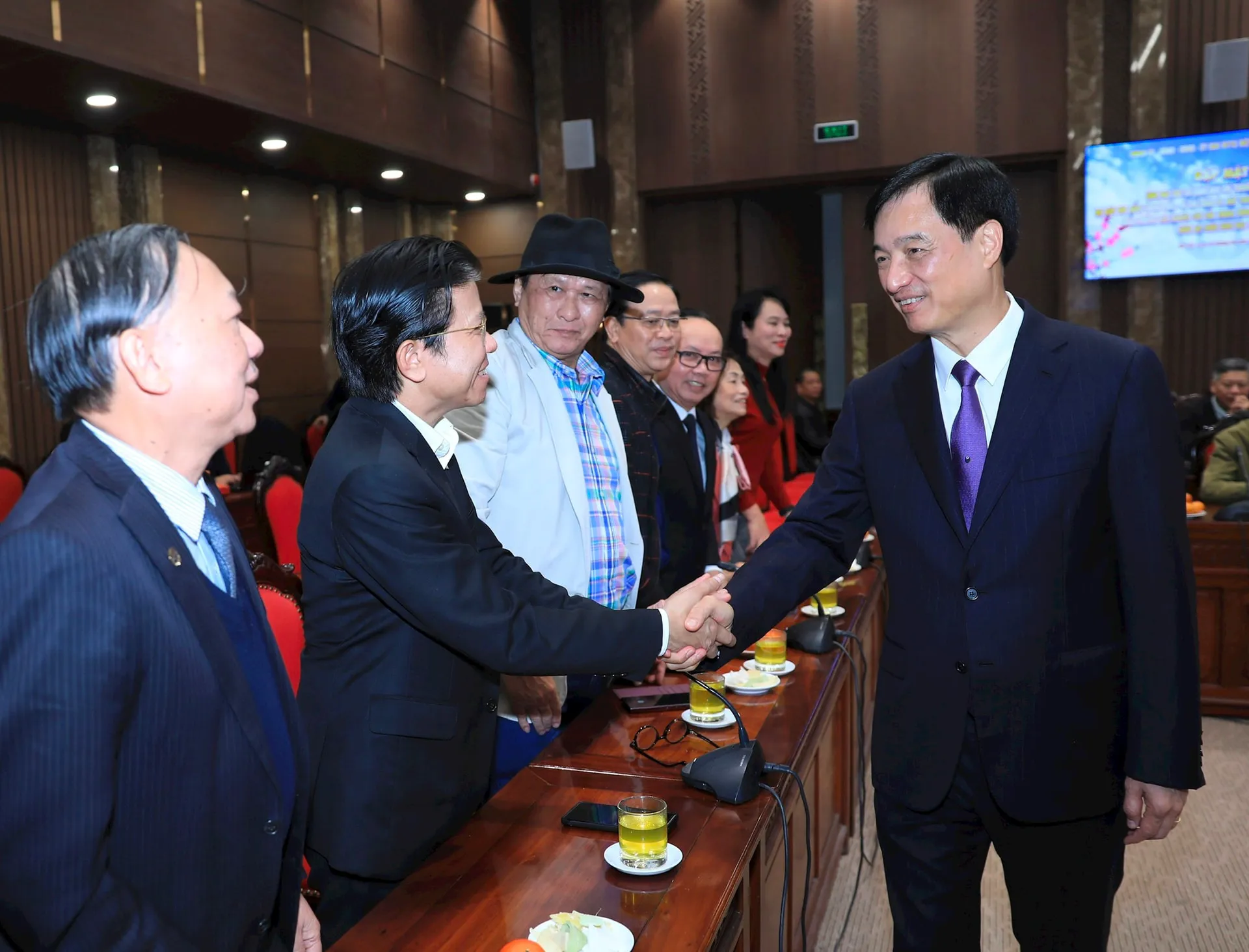 Chủ trì buổi gặp mặt có Ủy viên Bộ Chính trị, Bí thư Thành ủy Hà Nội Nguyễn Duy Ngọc; Ủy viên Trung ương Đảng, Phó Bí thư Thành ủy, Chủ tịch UBND TP Vũ Đại Thắng; Ủy viên Trung ương Đảng, Phó Bí thư Thành ủy Nguyễn Trọng Đông; Phó Bí thư Thường trực Thành ủy Nguyễn Văn Phong; Phó Bí thư Thành ủy, Chủ tịch HĐND TP Phùng Thị Hồng Hà; Ủy viên Ban Thường vụ Thành ủy, Chủ tịch Ủy ban MTTQ Việt Nam TP Bùi Huyền Mai.