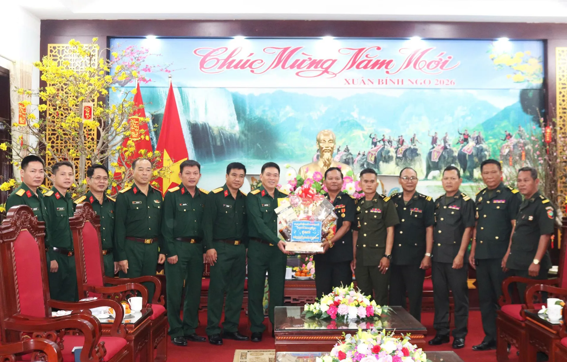 Tiểu khu Quân sự tỉnh Mondulkiri, Vương quốc Campuchia chúc mừng năm mới Bộ CHQS tỉnh Đắk Lắk. Ảnh P.D