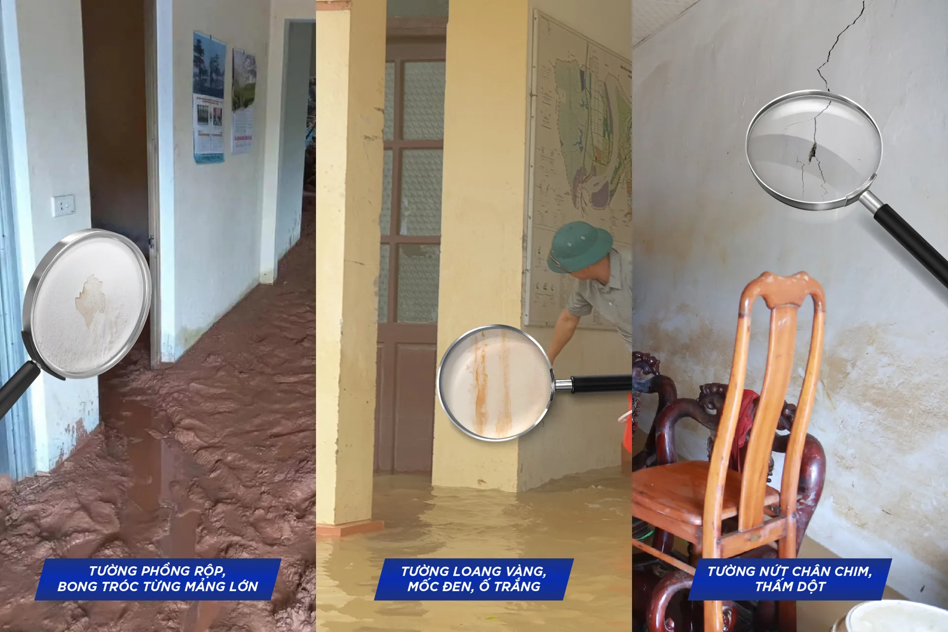 “Chỉ sau vài ngày mưa ngập, tường nhà tôi đã loang vàng, phồng rộp từng mảng sơn lớn. Thợ sơn nói do tường chưa được chống thấm kỹ, giờ muốn sửa lại phải cạo bỏ toàn bộ lớp cũ, tốn gần chục triệu đồng.” – anh Nguyễn Bình Minh (Phú Yên) chia sẻ sau đợt ngập lụt lịch sử ở miền Trung những ngày qua.