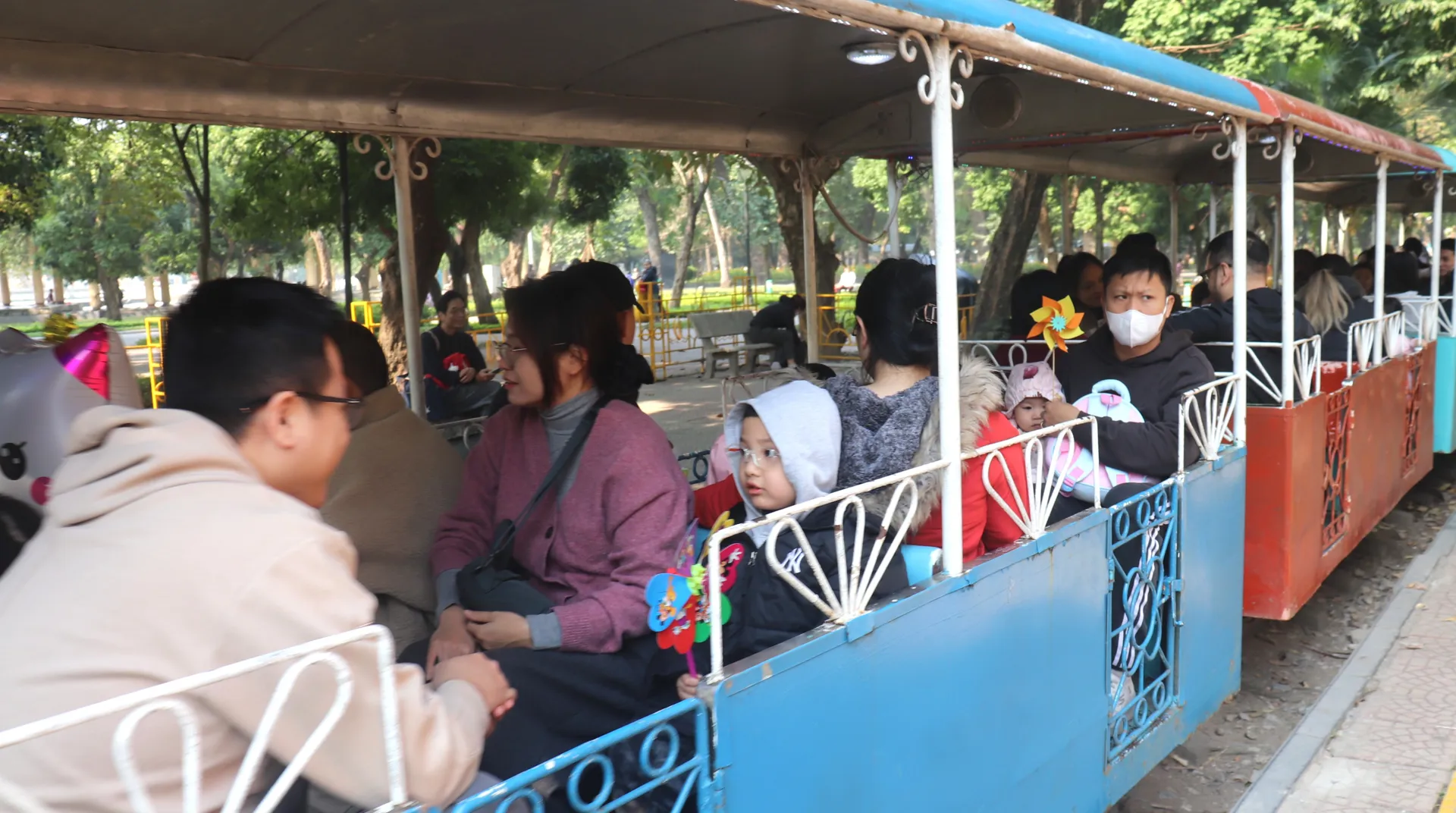 Đông đảo phụ huynh cho con trải nghiệm Đoàn tàu Thống Nhất trong Công viên
