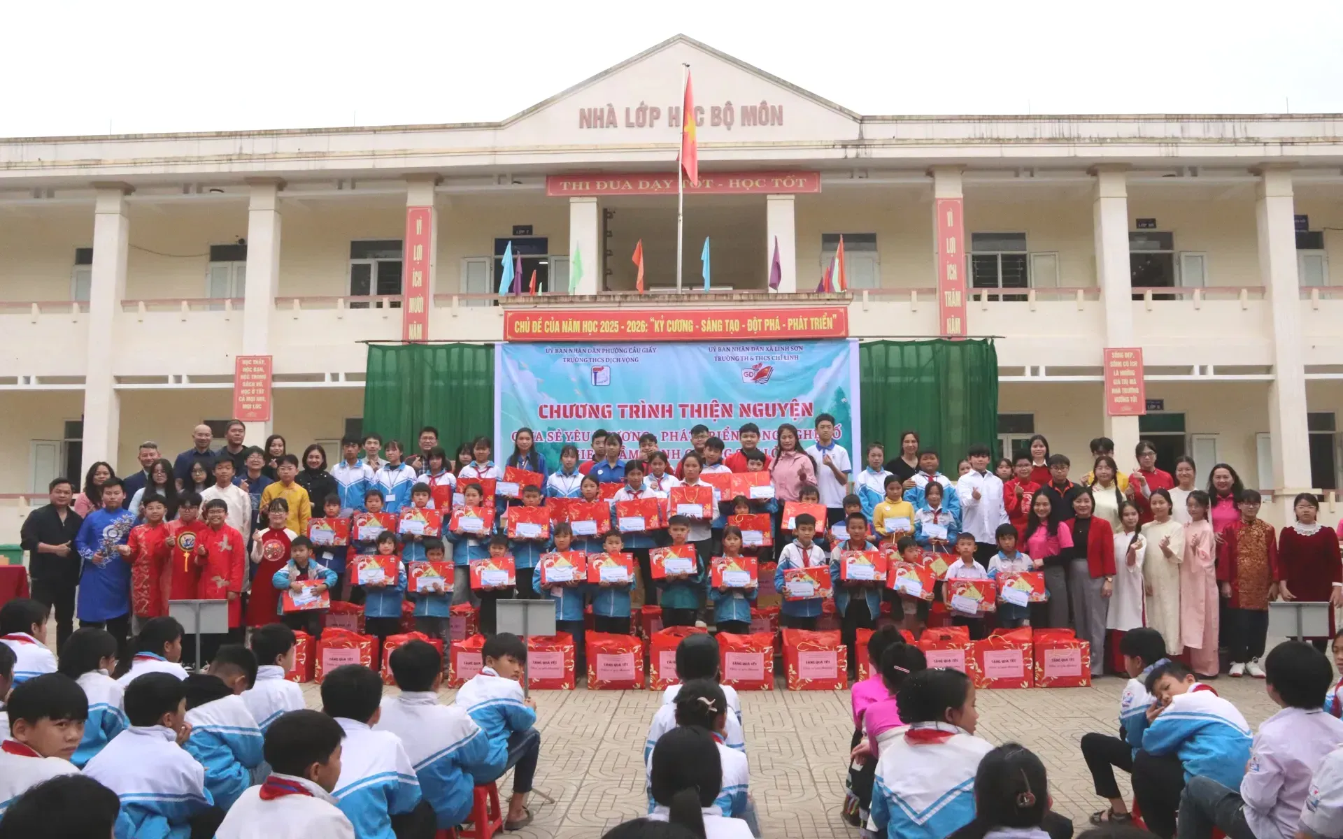 Cụ thể, đoàn đã trao 40 suất học bổng, 10 bộ máy tính, 400 áo ấm, 100 ba lô cùng sách, truyện, vở và nhiều đồ dùng học tập khác; đồng thời tặng bánh kẹo và một số nhu yếu phẩm thiết yếu cho học sinh.