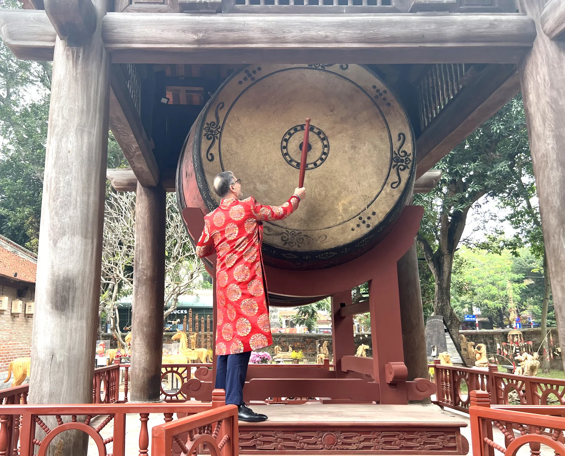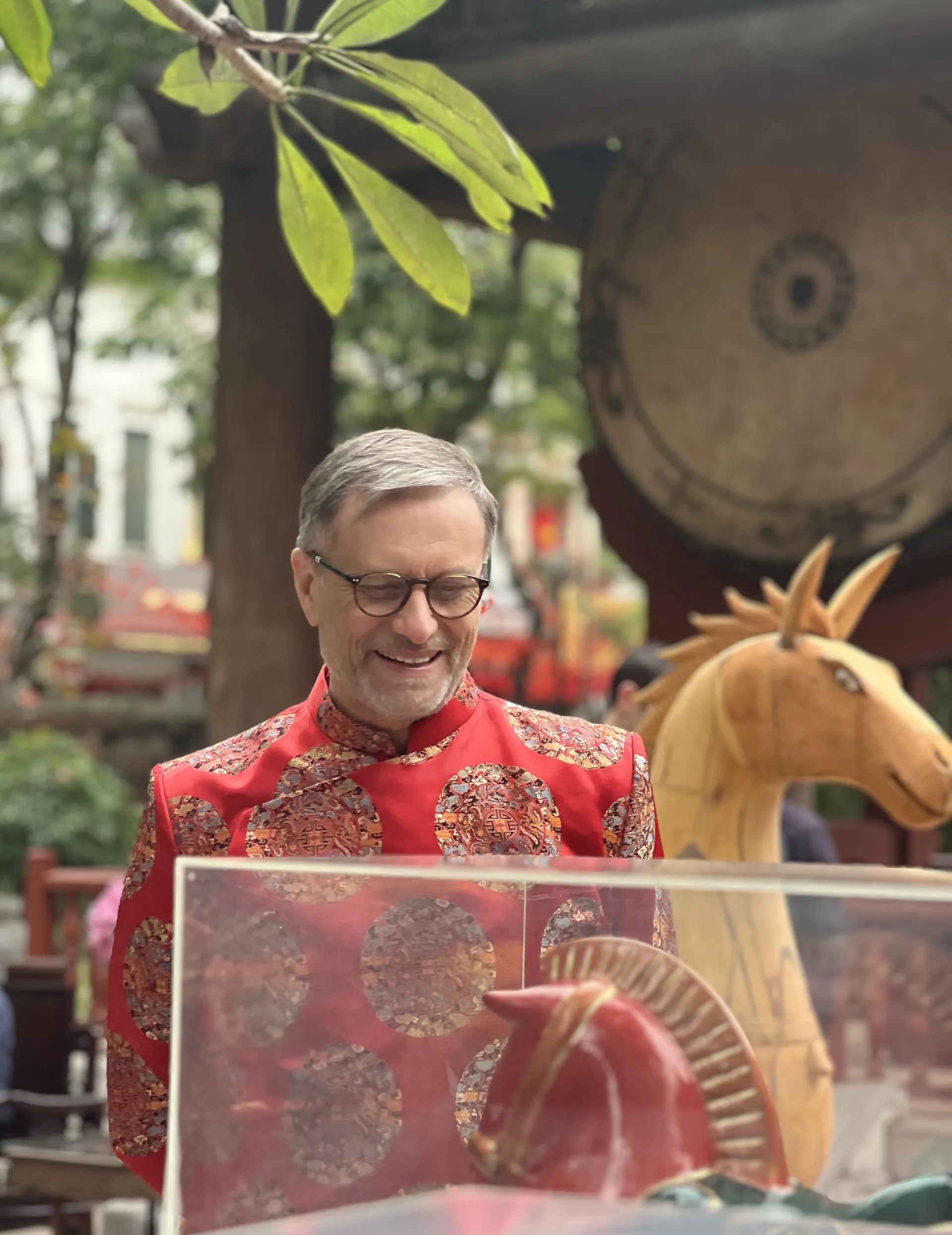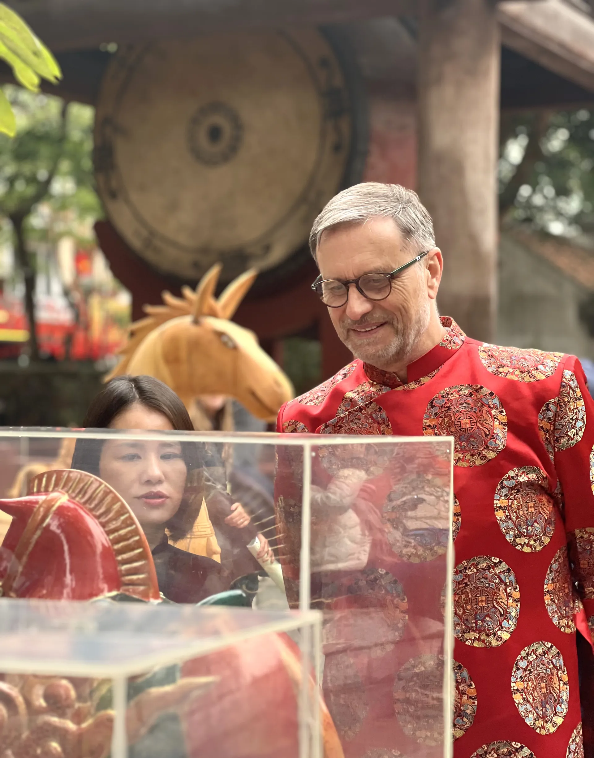 Đại sứ cũng có dịp trải nghiệm một số nét đẹp truyền thống của người Việt như xin chữ thầy đồ ngày Tết Nguyên đán, tham quan trưng bày thư pháp và khu triển lãm với chủ đề "Ngựa về phố" nhân dịp Xuân Bính Ngọ tới gần, dâng hương tại gian thờ Nhà giáo Chu Văn An và đánh trống sấm trong Văn Miếu - Quốc Tử Giám