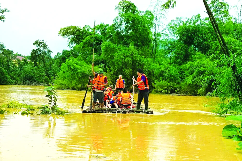 Lực lượng chức năng hỗ trợ sơ tán người dân đến nơi an toàn tại Thái Nguyên.