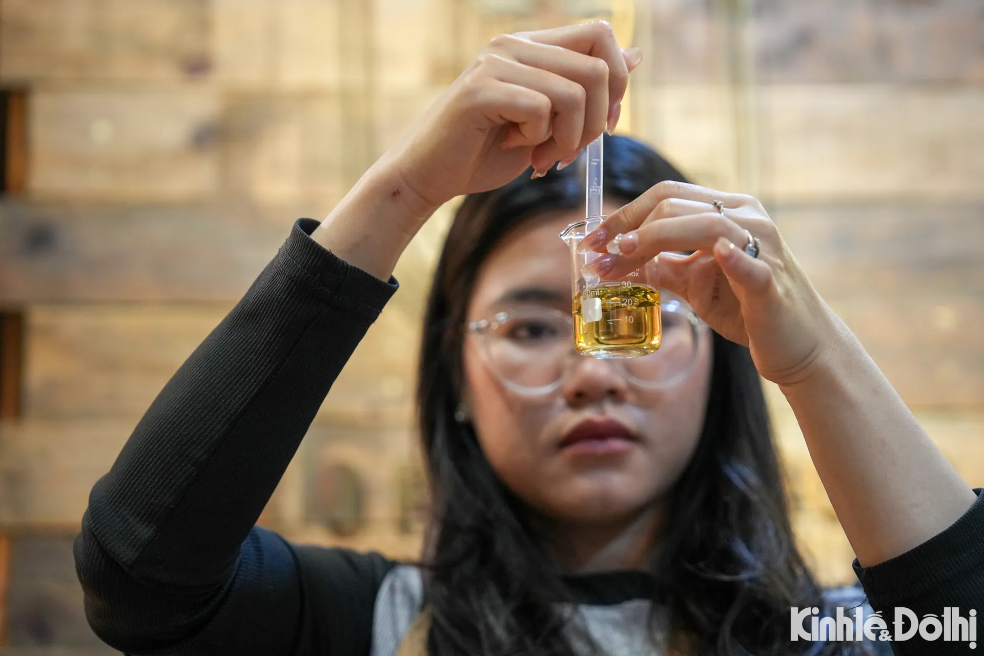 "Bên cạnh đó, kiến thức về cấu trúc phân tử và khả năng bay hơi của các nhóm hương cũng rất quan trọng. Các nhóm hương đầu, như hương cam chanh hoặc quả mọng, thường có phân tử nhỏ nên bay hơi nhanh, tạo ấn tượng trong khoảng 5–7 phút đầu sau khi xịt. Tiếp đến là tầng hương giữa, thường là các nốt hương hoa với phân tử lớn hơn, bay hơi chậm hơn. Cuối cùng là tầng hương nền như hương gỗ, có cấu trúc phân tử nặng và bền nhất, lưu lại trên da trong thời gian dài. Nhờ những kiến thức nền tảng đó, em có thể hiểu rõ hơn bản chất của quá trình pha chế và điều chỉnh mùi hương trong thực tế sản xuất" - Thanh Nhã nói thêm.