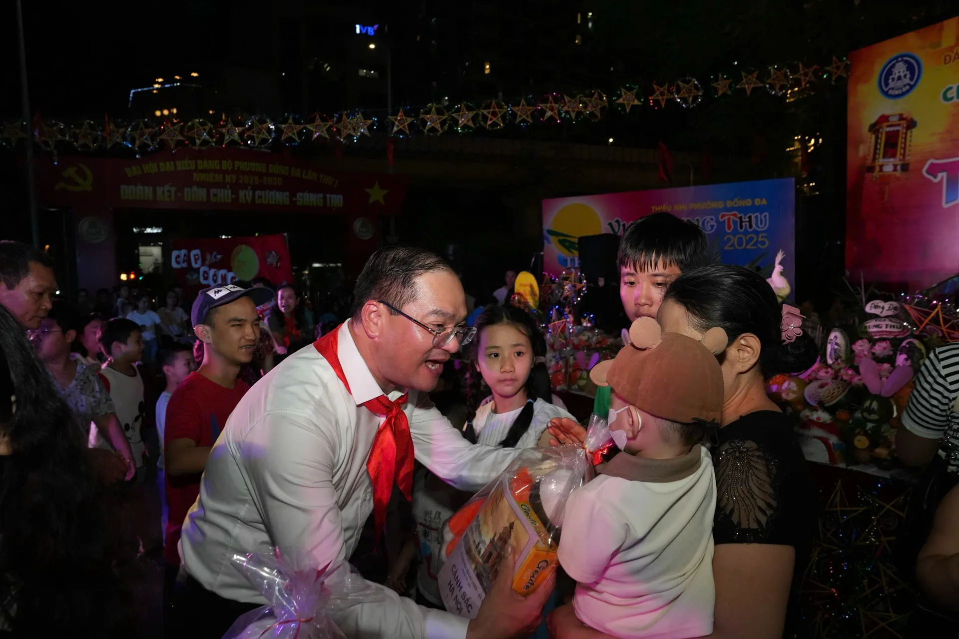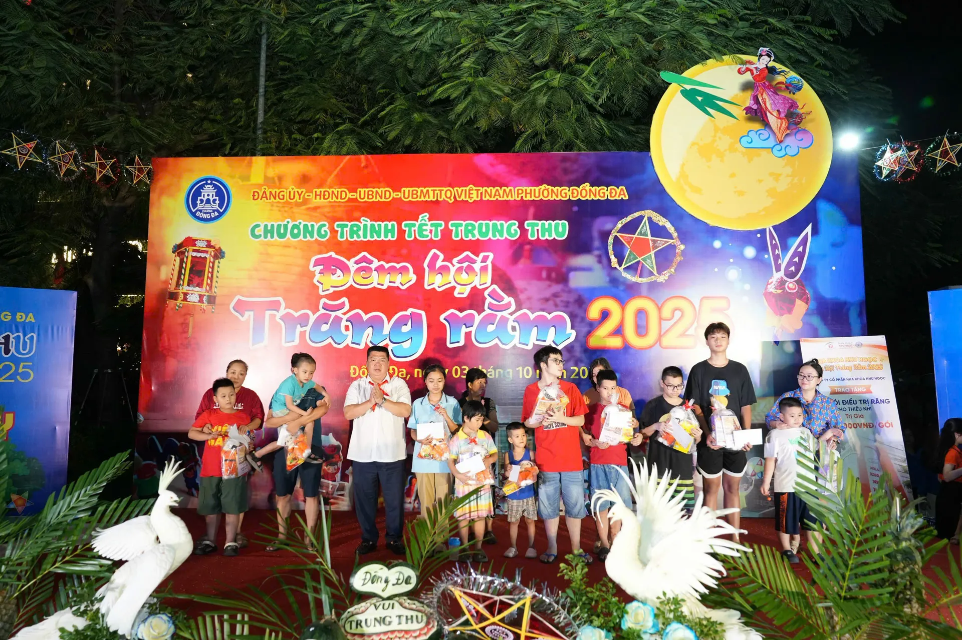 "Đêm hội Trăng rằm 2025" tại phường Đống Đa năm nay không chỉ góp phần giữ gìn bản sắc văn hoá truyền thống mà còn thể hiện sự quan tâm sâu sắc của các cấp ủy Đảng, chính quyền tới thế hệ măng non, đặc biệt là việc sẻ chia, lan tỏa tinh thần thiện nguyện tới các em nhỏ có hoàn cảnh khó khăn. Phường Đống Đa đã trao 106 phần quà để gửi tặng các em thiếu nhi có hoàn cảnh đặc biệt, vượt khó vươn lên.