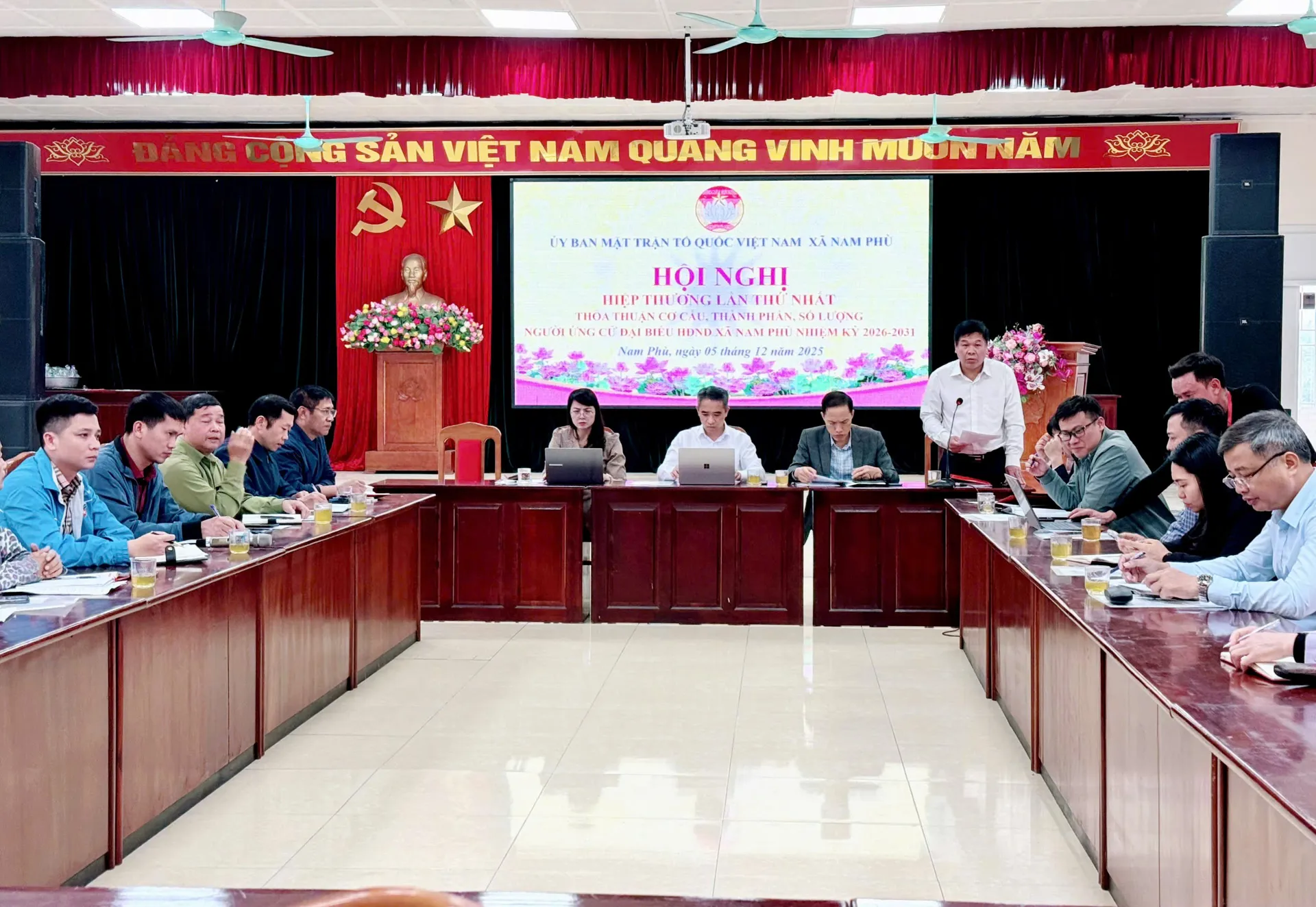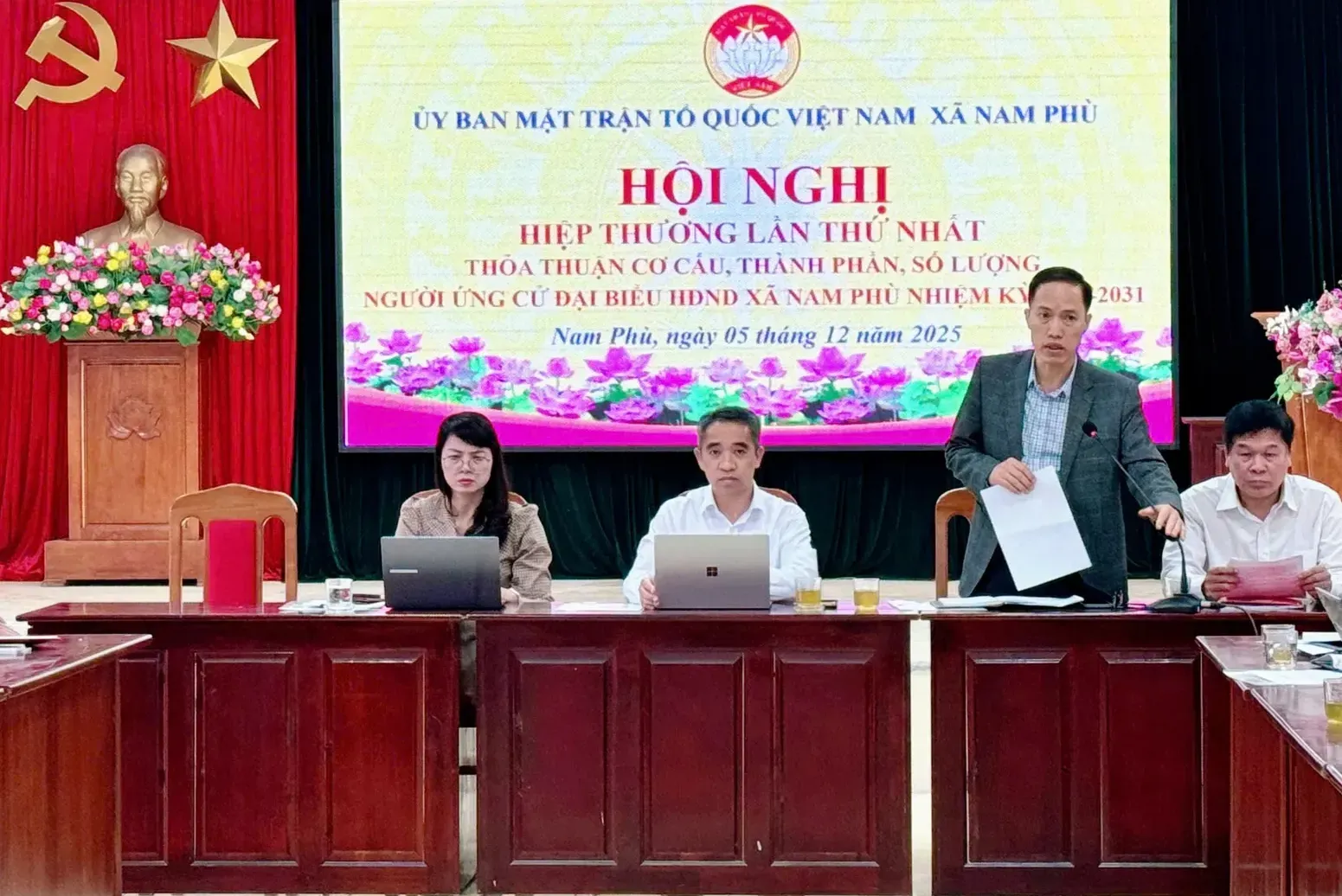 Kinhtedothi-Chiều 5/12, Ủy ban MTTQ Việt Nam xã Nam Phù tổ chức Hội nghị hiệp thương lần thứ nhất nhằm thỏa thuận dự kiến cơ cấu, thành phần và số lượng người được giới thiệu ứng cử đại biểu HĐND xã khóa II, nhiệm kỳ 2026 – 2031. Đây là hội nghị có ý nghĩa mở đầu, định hướng xuyên suốt cho quy trình giới thiệu người ứng cử, đặt nền tảng để đảm bảo các bước tiếp theo được triển khai đúng quy định, khoa học và hiệu quả.