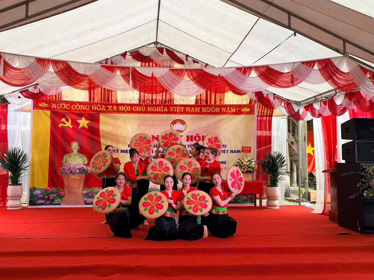 Múa quạt của phụ nữ Mường tại Ngày hội Đại đoàn kết toàn dân tộc thôn Đồng Ké năm 2025.
