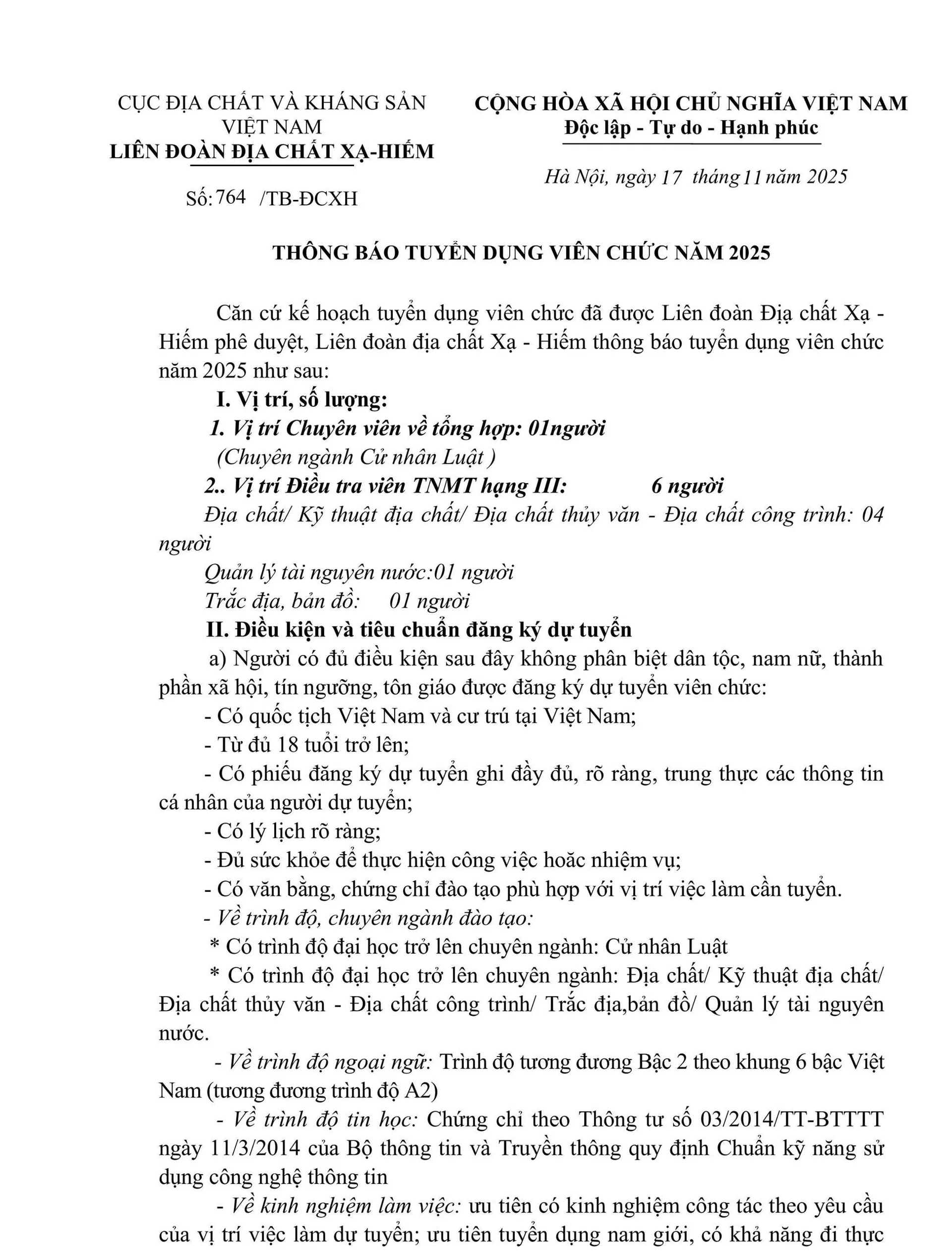 Kinhtedothi - Liên đoàn Địa chất Xạ - Hiếm thông báo tuyển dụng viên chức năm 2025
