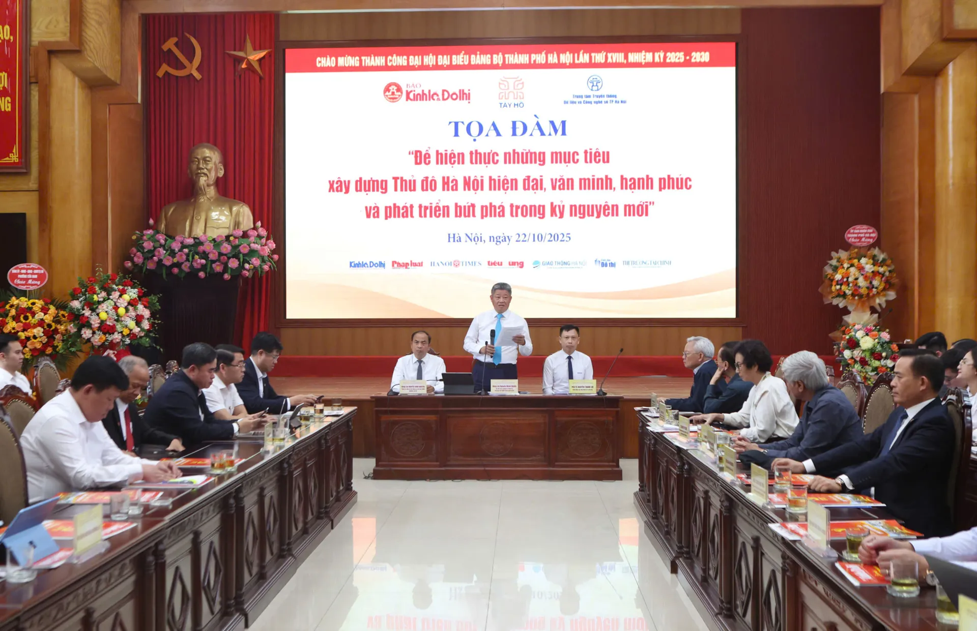 Thực hiện Kế hoạch số 349-KH/TU ngày 8/7/2025 của Thành ủy Hà Nội về tuyên truyền Đại hội Đảng các cấp, Đại hội đại biểu Đảng bộ Thành phố Hà Nội lần thứ XVIII và Đại hội đại biểu toàn quốc lần thứ XIV của Đảng; Công văn số 648-CV/BTGDVTU của Ban Tuyên giáo và Dân vận Thành ủy Hà Nội về việc đẩy mạnh tuyên truyền cao điểm chào mừng Đại hội đại biểu Đảng bộ Thành phố Hà Nội lần thứ XVIII, nhiệm kỳ 2025 – 2030, sáng 22/10, Báo Kinh tế & Đô thị phối hợp với Đảng uỷ - HĐND - UBND - Uỷ ban MTTQ Việt Nam phường Tây Hồ cùng Trung tâm Truyền thông, Dữ liệu và Công nghệ số TP Hà Nội tổ chức tọa đàm với chủ đề “Để hiện thực những mục tiêu xây dựng Thủ đô Hà Nội hiện đại, văn minh, hạnh phúc và phát triển bứt phá trong kỷ nguyên mới”.
