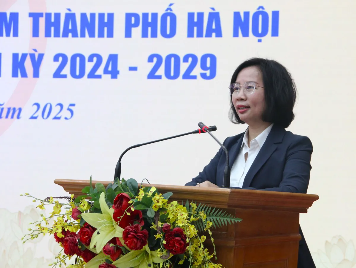 Chủ tịch Ủy ban Mặt trận Tổ quốc Việt Nam TP Hà Nội Bùi Huyền Mai phát biểu