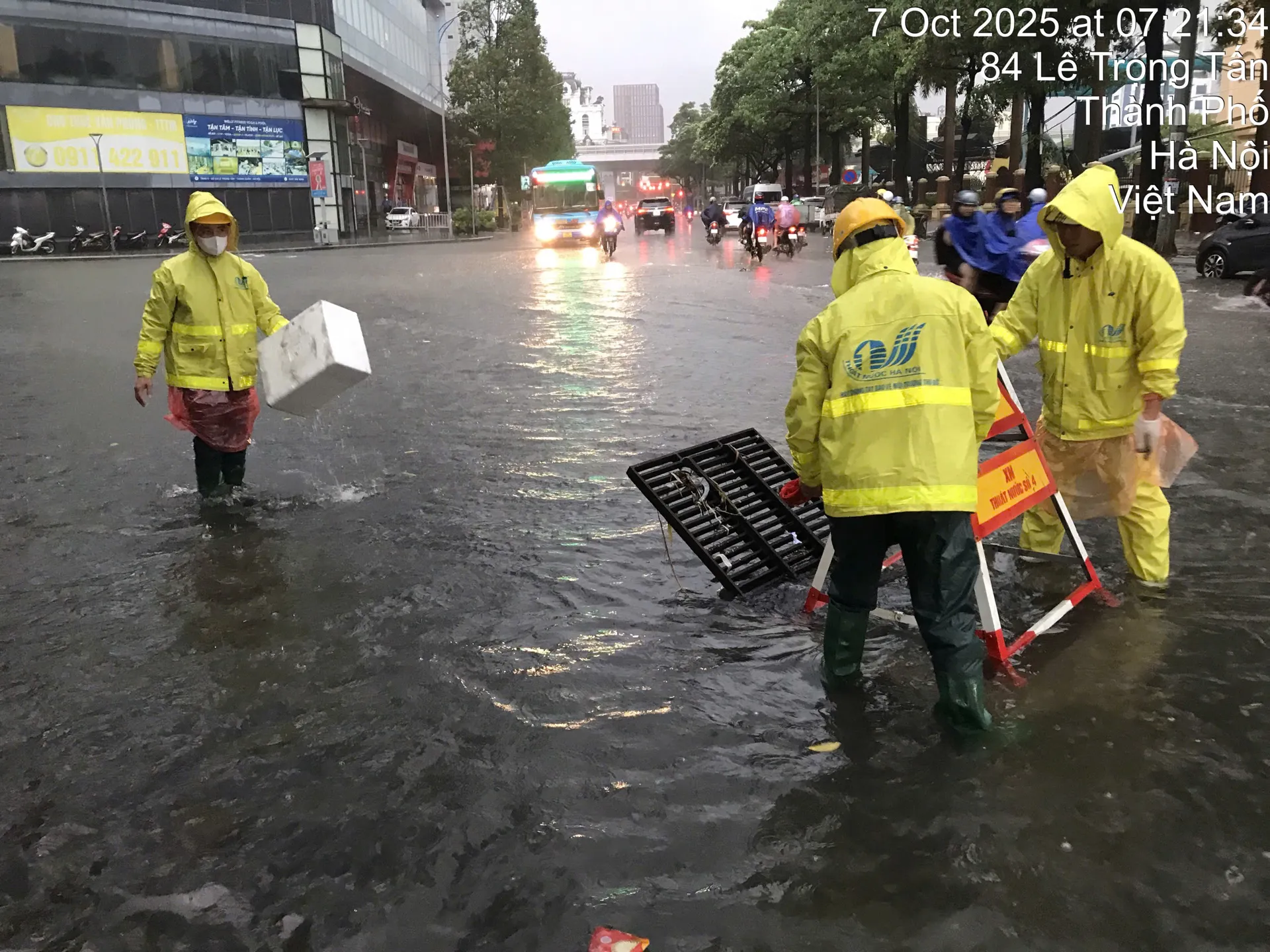 Để bảo đảm công tác vận hành hệ thống thoát nước, Công ty TNHH MTV Thoát nước Hà Nội đã 6h30 ngày 7/10, trên địa bàn TP các lực lượng, phương tiện của Công ty vẫn tiếp tục ứng trực, vận hành các trạm bơm đầu mối theo quy trình để hạ mực nước hệ thống, vệ sinh đảm bảo khơi thông dòng chảy.