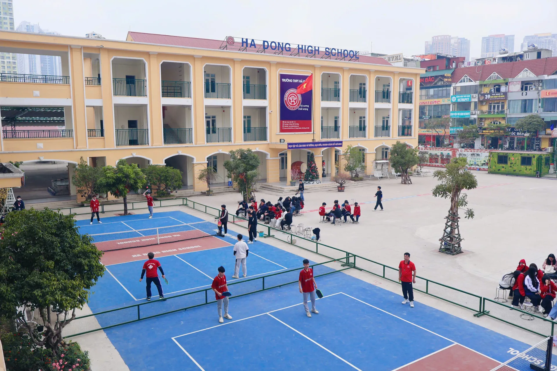 Học sinh Trường THPT Hà Đông tập luyện pickleball.