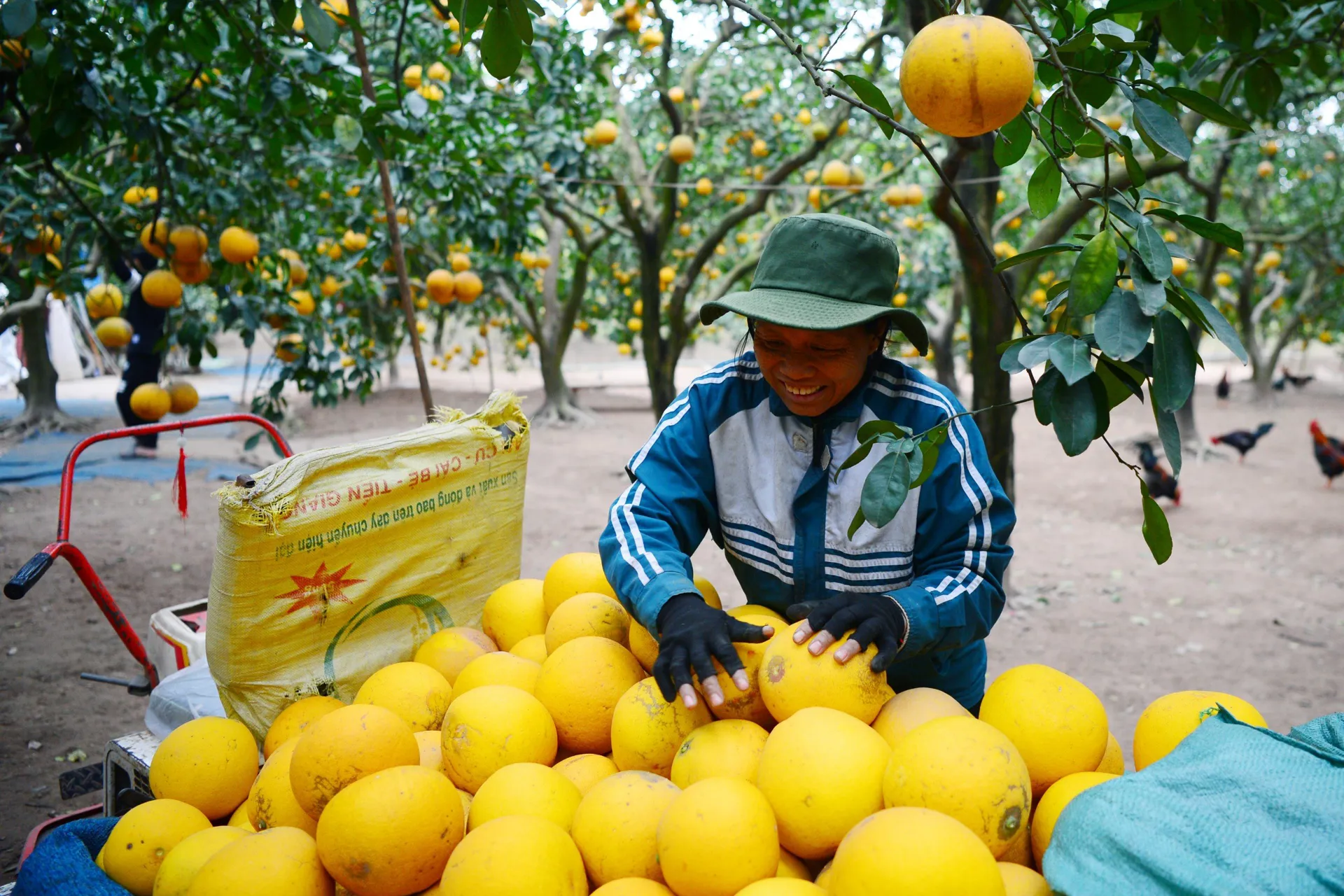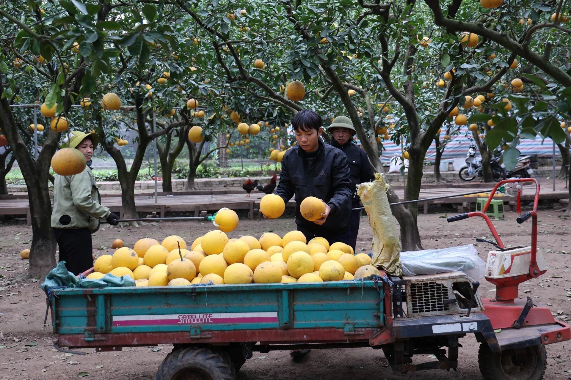 Niềm vui của người trồng bưởi trong mùa thu hoạch cao điểm.