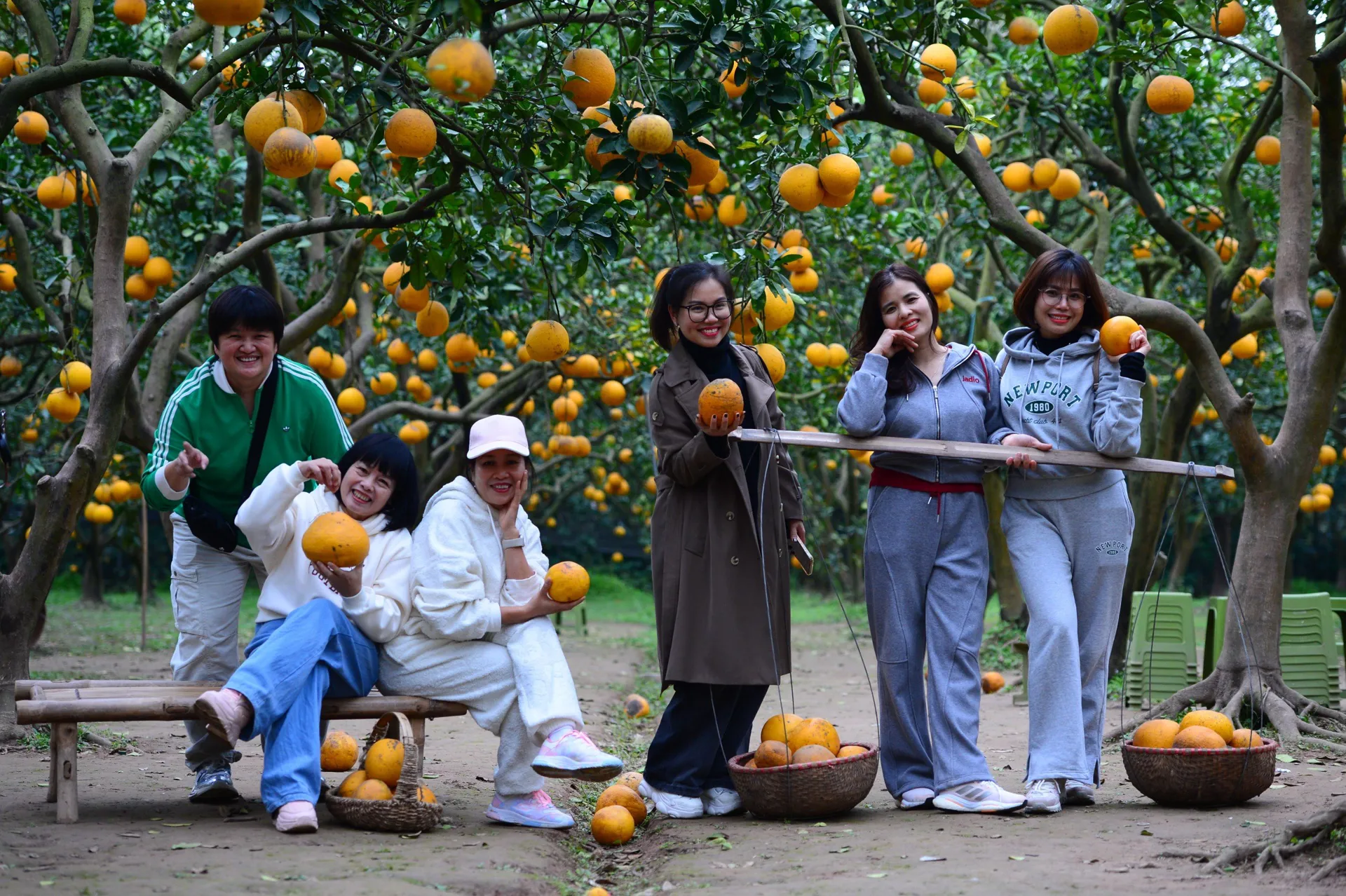 Khách tham quan thích thú chụp ảnh, trải nghiệm không gian vườn bưởi những ngày cận Tết Nguyên Đàn 2026