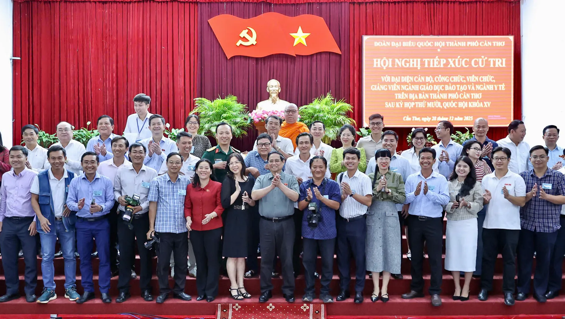 Kinhtedothi - Chiều 28/12, tại TP Cần Thơ, Thủ tướng Chính phủ Phạm Minh Chính cùng Đoàn đại biểu Quốc hội TP Cần Thơ tiếp xúc cử tri là đại diện cán bộ, công chức, viên chức, giảng viên ngành giáo dục đào tạo và ngành y tế trên địa bàn TP Cần Thơ sau kỳ họp thứ 10, Quốc hội khóa XV.