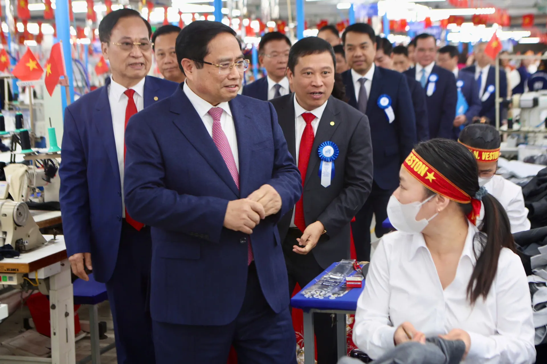 Thủ tướng Chính phủ Phạm Minh Chính thăm xưởng sản xuất của May 10. Ảnh: Duy Khánh