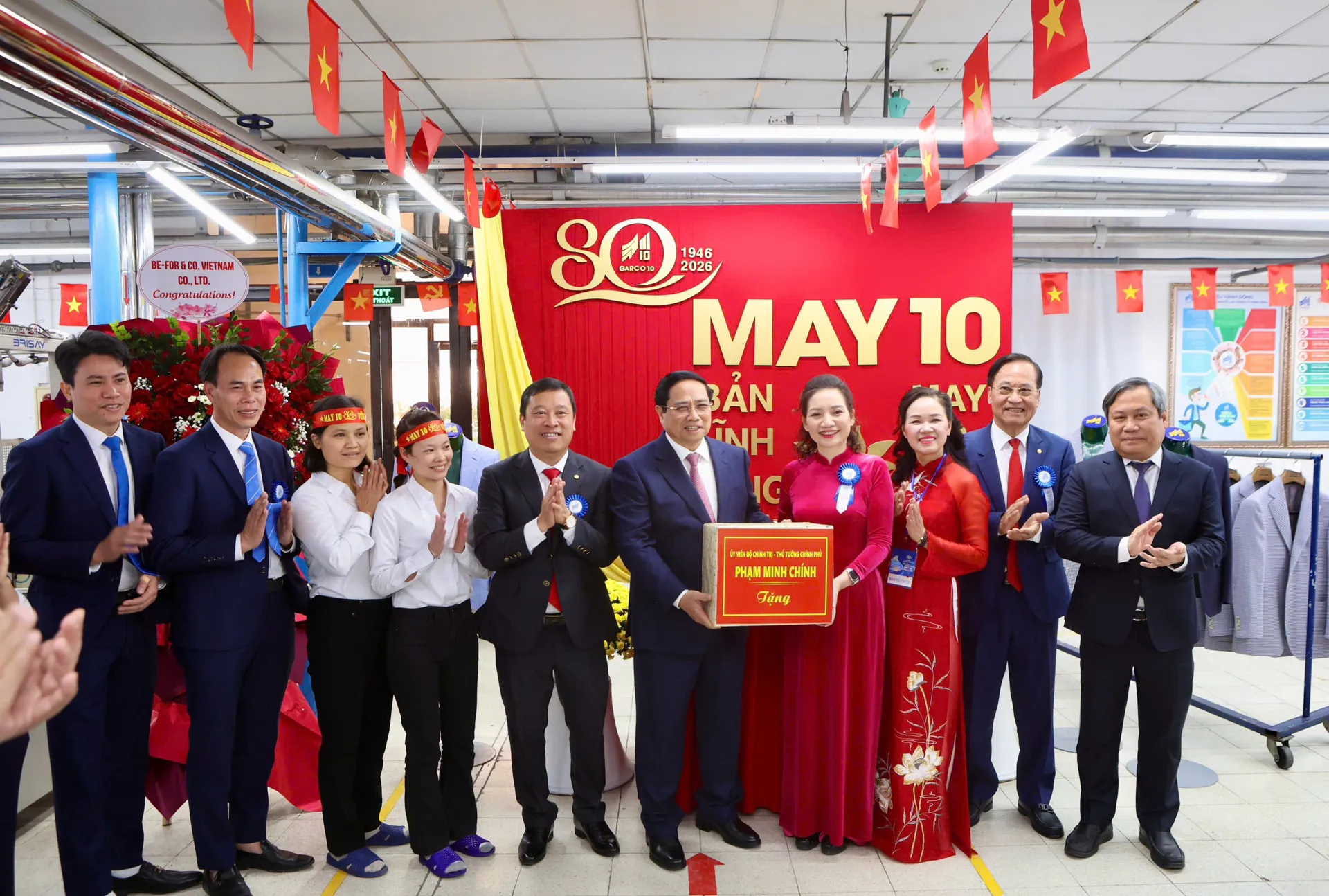 Đánh giá cao những kết quả ấn tượng mà May 10 đã đạt được, Thủ tướng nhấn mạnh: thứ nhất, Tổng công ty May 10 luôn duy trì đà tăng trưởng bền vững trong năm qua. Doanh thu trên 5,1 nghìn tỷ đồng, lợi nhuận tăng trưởng 2 con số (50%) trong bối cảnh thị trường khó khăn là một nỗ lực tuyệt vời. Danh hiệu “Doanh nghiệp xuất khẩu xuất sắc” vừa được Bộ Công Thương trao tặng cho Tổng Công ty May 10 tại Hội nghị tổng kết ngành Công Thương năm 2025 vừa qua là sự khẳng định vị thế của May 10 trên bản đồ dệt may thế giới. Đặc biệt, sự linh hoạt trong việc quay lại khai thác thị trường nội địa 100 triệu dân khi xuất khẩu gặp khó khăn là một bước đi chiến lược rất “đúng và trúng” với chủ trương, đường lối của Đảng và sự điều hành của Chính phủ.