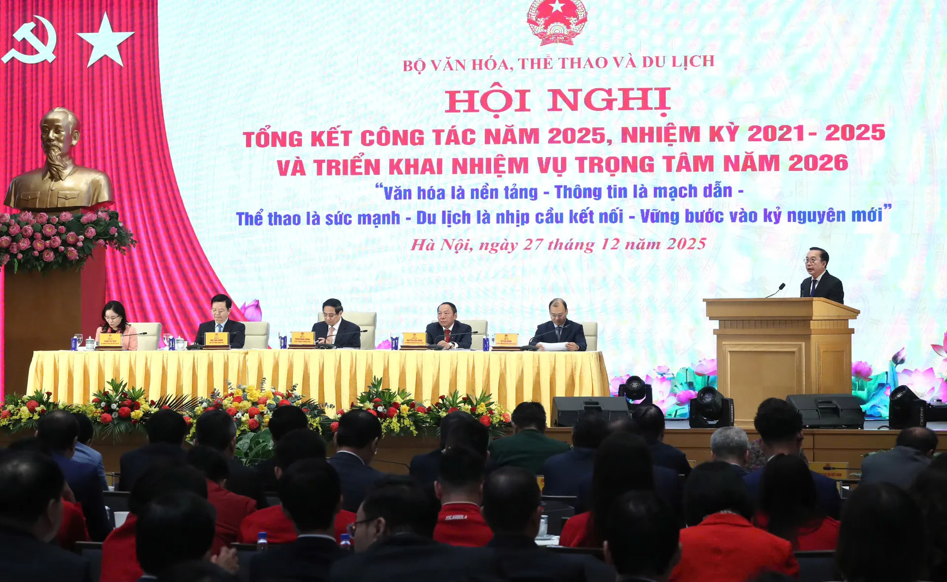 Phát biểu chỉ đạo tại hội nghị, Thủ tướng Chính phủ Phạm Minh Chính ghi nhận, biểu dương kết quả của Bộ VHTT&DL và toàn ngành đã đạt được trong năm 2025 và nhiệm kỳ 2021 - 2025. Thủ tướng cũng khẳng định, ngành văn hóa đã lớn mạnh, trưởng thành toàn diện, với nhiều điểm nổi bật như thay đổi tư duy từ làm văn hóa sang quản lý Nhà nước về văn hóa, hoàn thiện thể chế chính sách làm công cụ kiến tạo phát triển trong lĩnh vực văn hóa. Đặc biệt đã tham mưu cho Bộ Chính trị ban hành nghị quyết phát triển văn hóa Việt Nam, tổ chức thành công nhiều sự kiện trọng đại của đất nước nói chung và ngành văn hóa - thể thao - du lịch nói riêng.