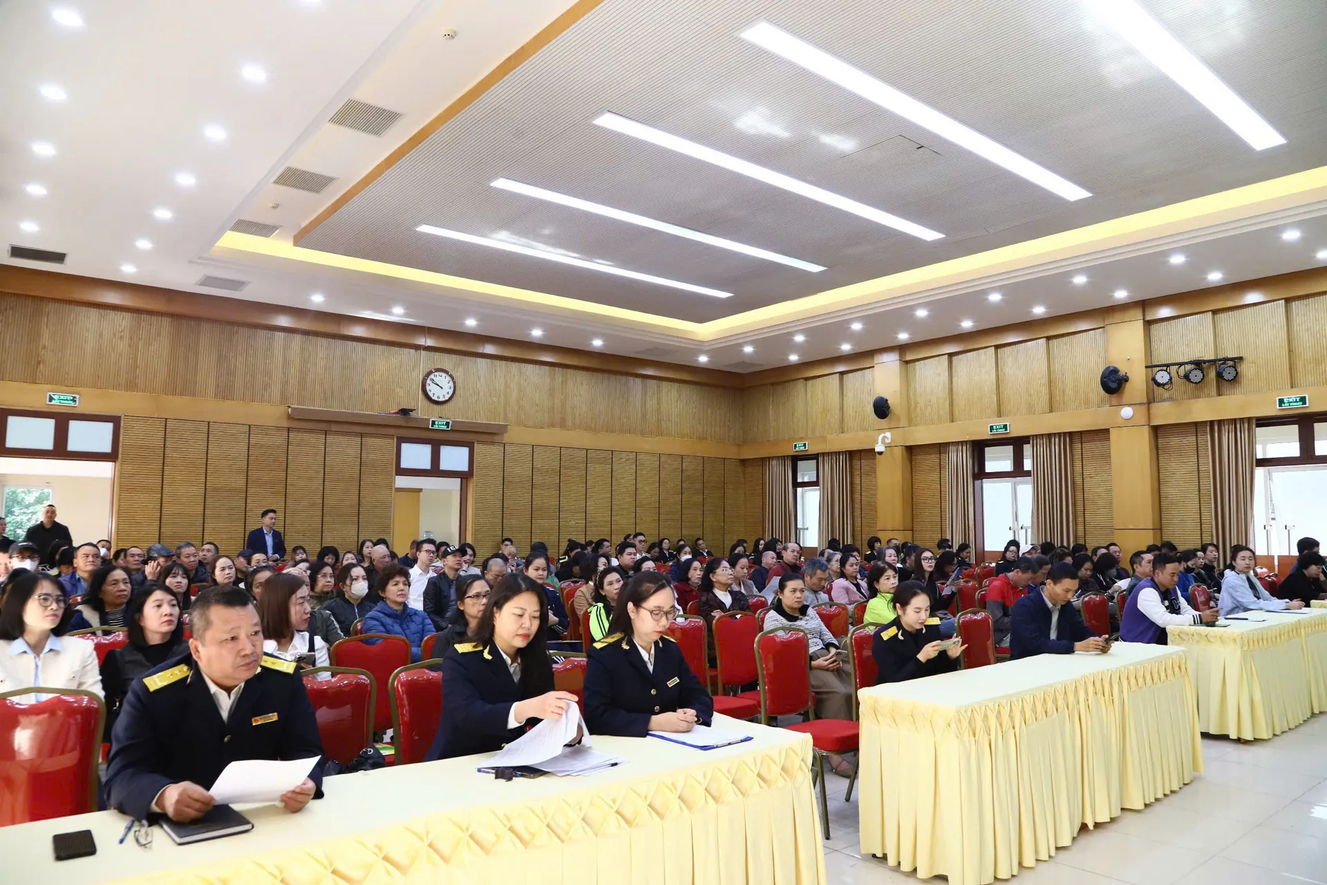 Quang cảnh hội nghị "Tập huấn và hỗ trợ hộ kinh doanh chuyển đổi từ thuế khoán sang kê khai và chuyển đổi lên doanh nghiệp" sáng 28/11.