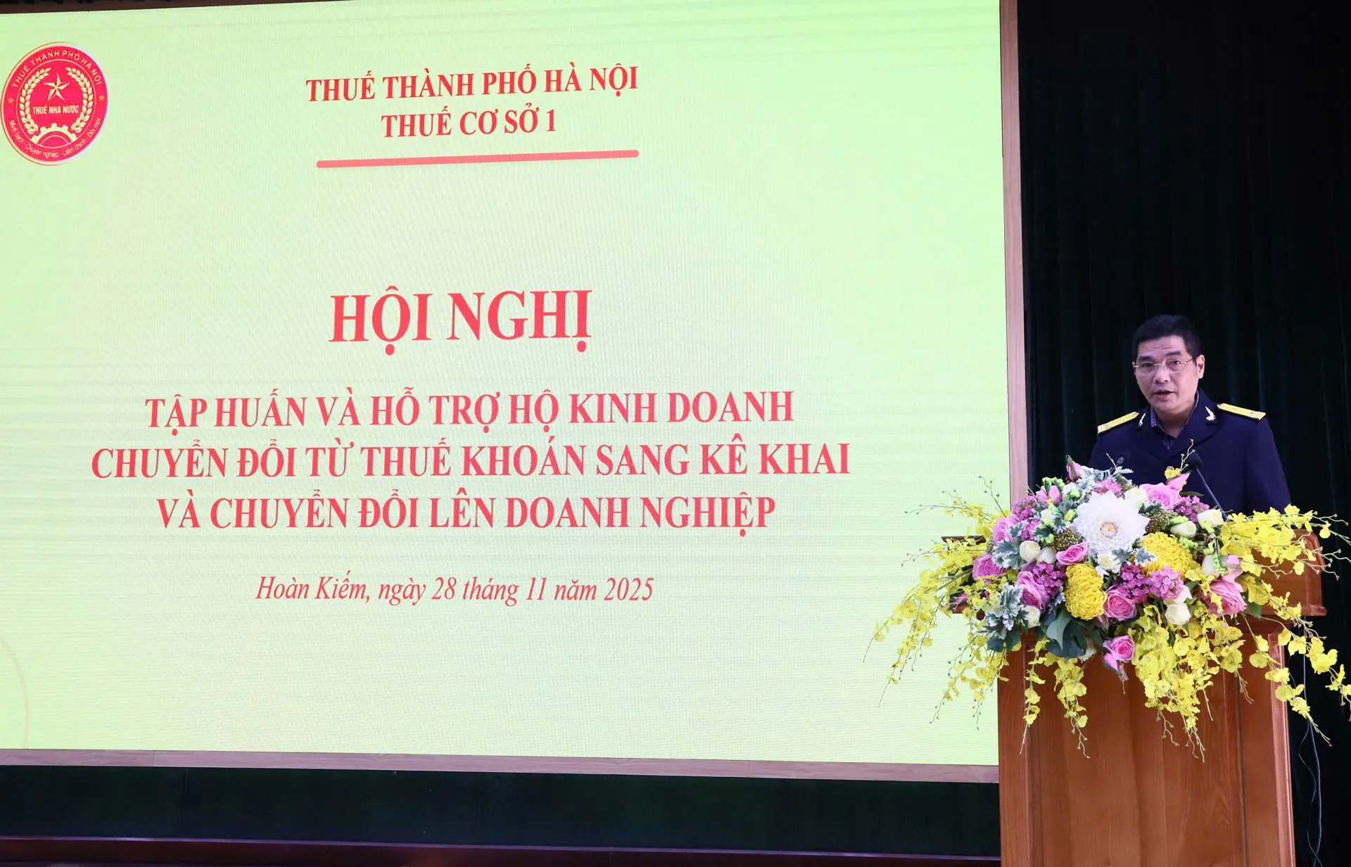 Phát biểu khai mạc tại hội nghị, Phó Trưởng Thuế cơ sở 1 TP Hà Nội Đặng Hoàng Điệp khẳng định, cơ quan thuế sẽ đồng hành xuyên suốt cùng HKD trước, trong và sau quá trình chuyển đổi để đảm bảo 100% HKD thực hiện chuyển đổi thành công, tạo điều kiện thuận lợi nhất để hộ kinh doanh tuân thủ pháp luật một cách tự tin, chủ động.