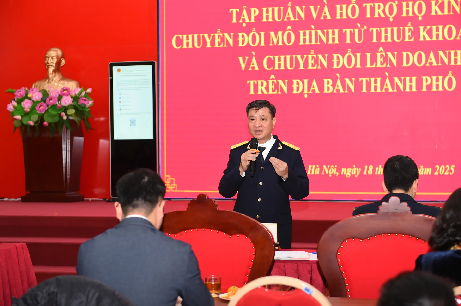 Kinhtedothi- Ngày 18/11/2025, Thuế TP Hà Nội tổ chức hội nghị (trực tiếp kết hợp trực tuyến) hỗ trợ các hộ, cá nhân kinh doanh chuyển đổi từ phương pháp thuế khoán sang phương pháp kê khai và phát triển lên doanh nghiệp và tổ chức Chương trình lựa chọn hóa đơn may mắn quý I, II năm 2025.