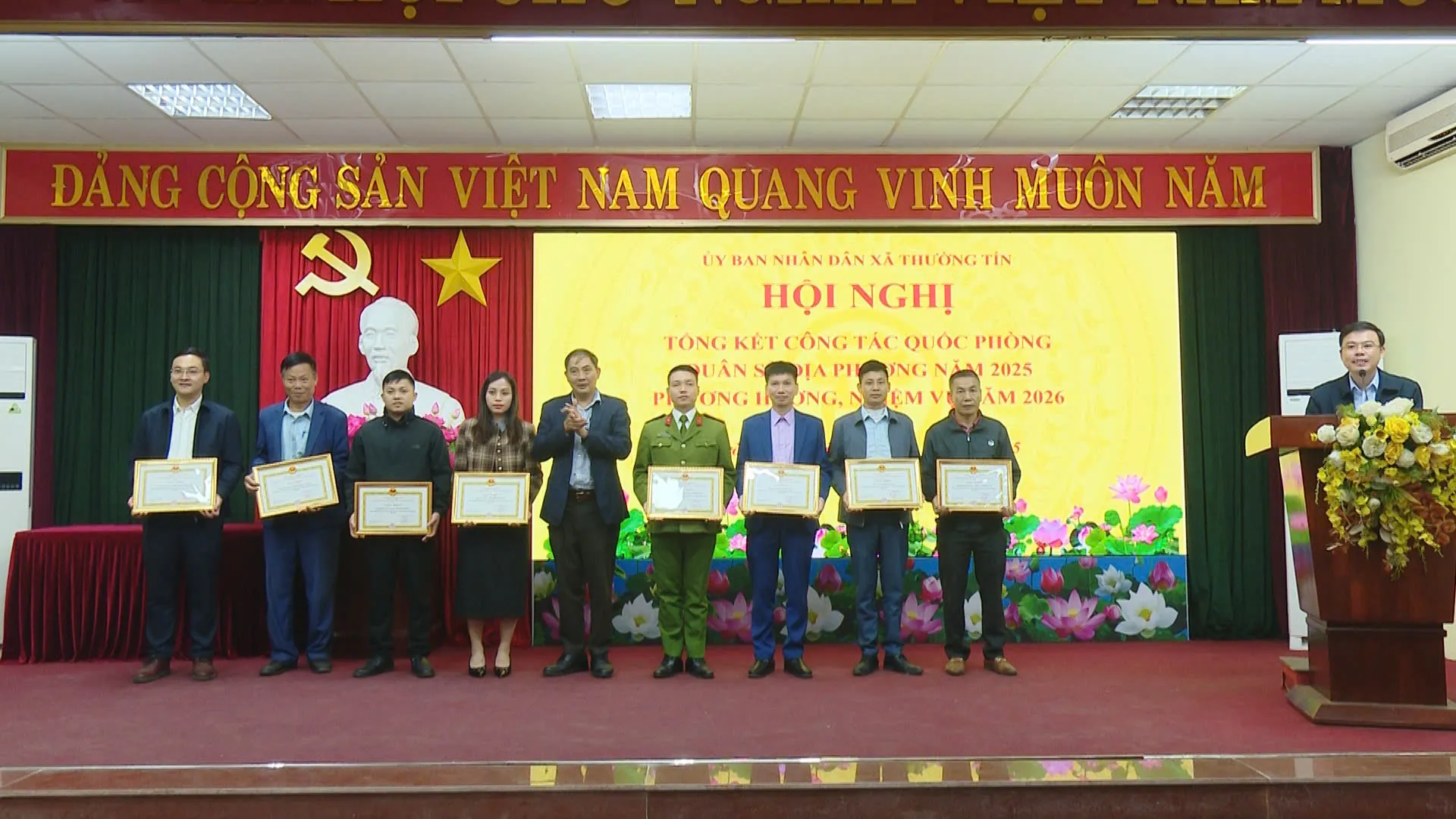 Nhân dịp này, UBND xã Thường Tín đã khen thưởng cho 43 tập thể và cá nhân có thành tích xuất sắc trong công tác Quân sự - Quốc phòng địa phương năm 2025.