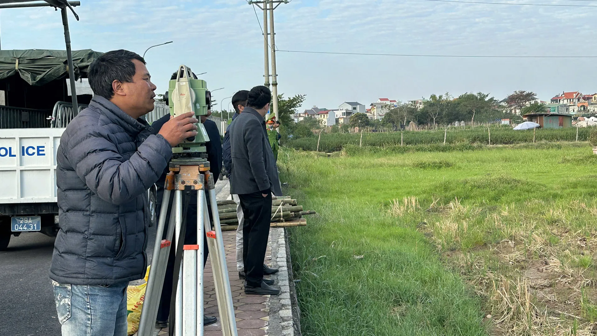 Như kế hoạch đã thông báo công khai theo quy định để các gia đình cũng như người dân và cơ quan quản lý nắm bắt thông tin, sau khi Phó Chủ tịch UBND xã Thường Tín Nguyễn Văn Tản đọc các quyết định cưỡng chế kiểm đếm bắt buộc, tổ công tác bắt đầu tiến hành đo đạc, cắm mốc xác định từng thửa đất của 55 hộ gia định để triển khai các bước tiếp theo.