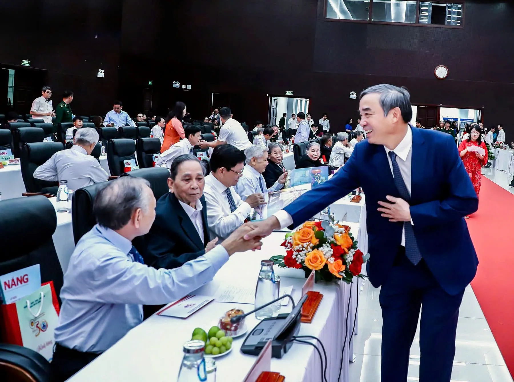 Lãnh đạo thành phố Đà Nẵng bắt tay với các cán bộ lão thành.