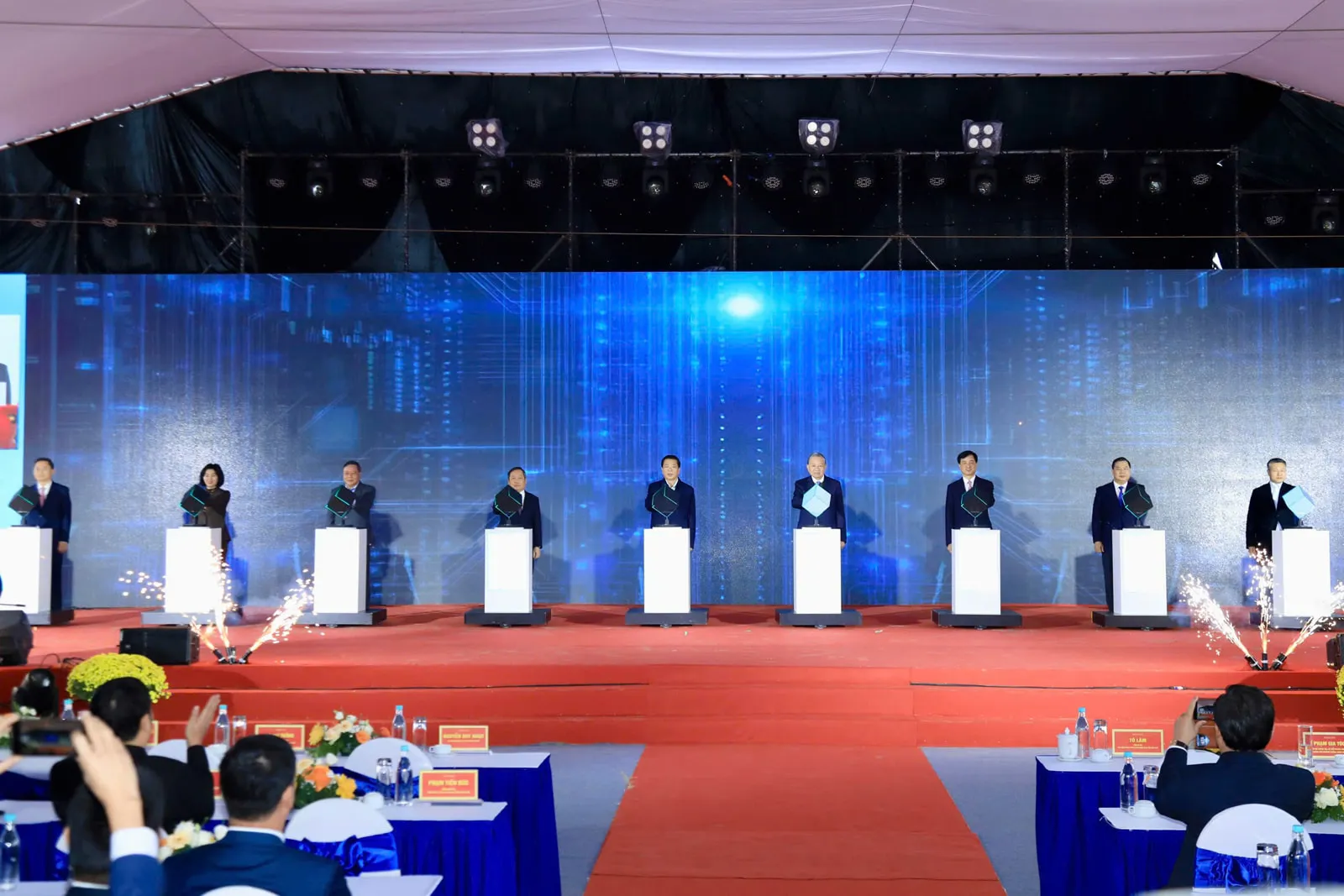 Tổng Bí thư Tô Lâm cùng các đại biểu thực hiện nghi thức khởi công dự án Khu đô thị đa mục tiêu Bắc Thăng Long Urban City tại xã Phúc Thịnh, ngày 2/2. Ảnh: Quang Thái