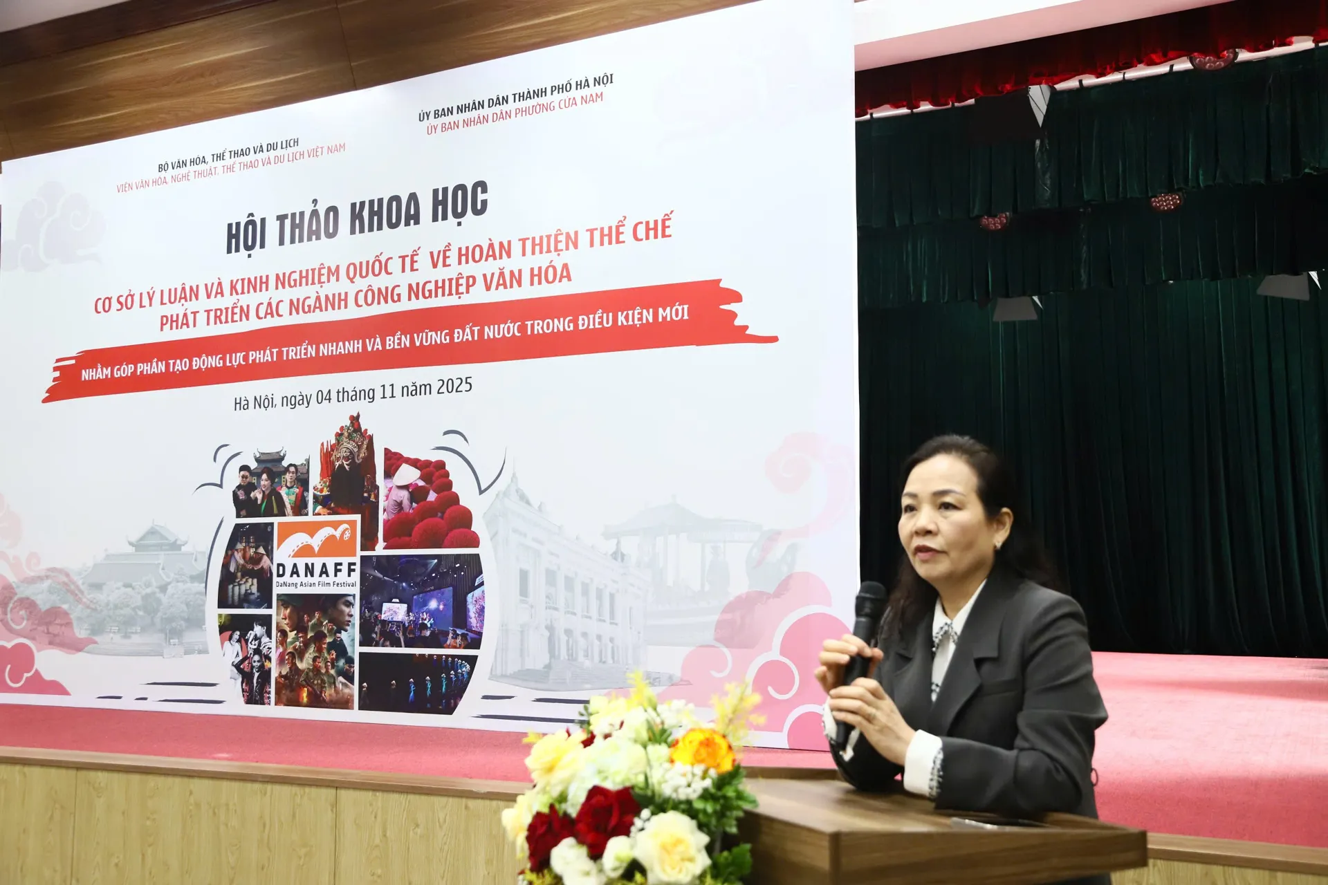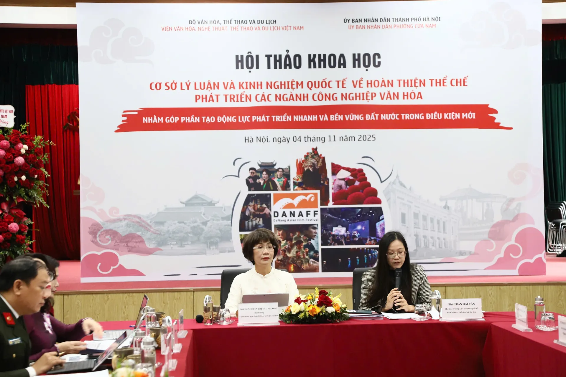 Kinhtedothi - Sáng 4/11, Viện Văn hóa, Nghệ thuật, Thể thao và Du lịch Việt Nam (Bộ Văn hóa, Thể thao và Du lịch) phối hợp cùng UBND phường Cửa Nam (TP Hà Nội) tổ chức hội thảo khoa học "Cơ sở lý luận và kinh nghiệm quốc tế về hoàn thiện thể chế phát triển các ngành công nghiệp văn hóa, nhằm góp phần tạo động lực phát triển nhanh và bền vững đất nước trong điều kiện mới".