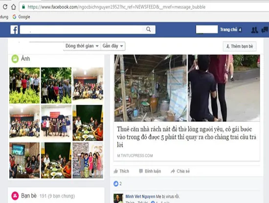 Theo phản ánh của người dùng Facebook, thời gian gần đây, nhiều người dùng đã bị tag vào các post giới thiệu các bài viết có tiêu đề hot, gợi tò mò của người đọc, ví dụ như: “Thuê căn nhà rách nát để thử lòng người yêu, cô gái bước vào trong đó được 5 phút thì quay ra cho chàng trai câu trả lời”… với nguồn liên kết bên dưới được ghi theo các trang tin uy tín.