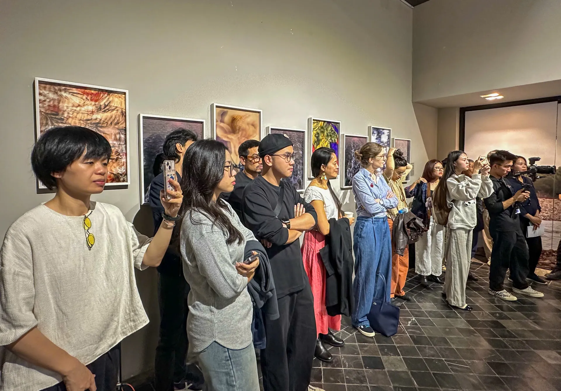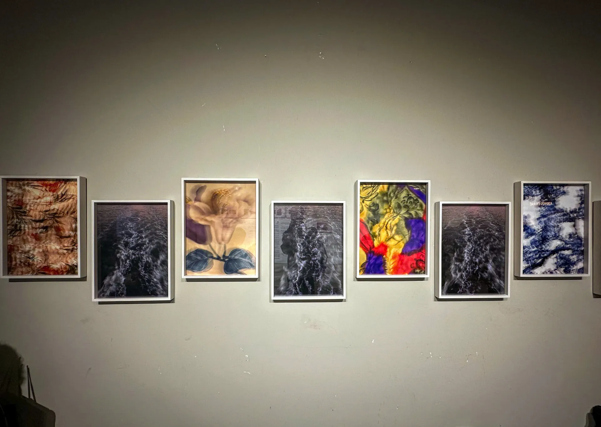 Trong không gian triển lãm, khán giả được dẫn dắt vào thế giới nội tâm của người nghệ sĩ qua những khung hình đầy tính trừu tượng, từ vệt nước, gợn sóng đến hình ảnh của những bông hoa trên áo người mẹ thường mặc… Những chi tiết tưởng như vụn vặt ấy lại trở thành chất liệu để anh tái hiện lại ký ức - những ký ức không rõ nét, chỉ còn là mảng sáng tối, là cảm giác, là dư âm. Với Duy Phương, sự mờ nhòe đó chính là “ngôn ngữ” của ký ức, nơi ranh giới giữa thực và ảo, giữa hiện hữu và tan biến, trở nên vô cùng mong manh.