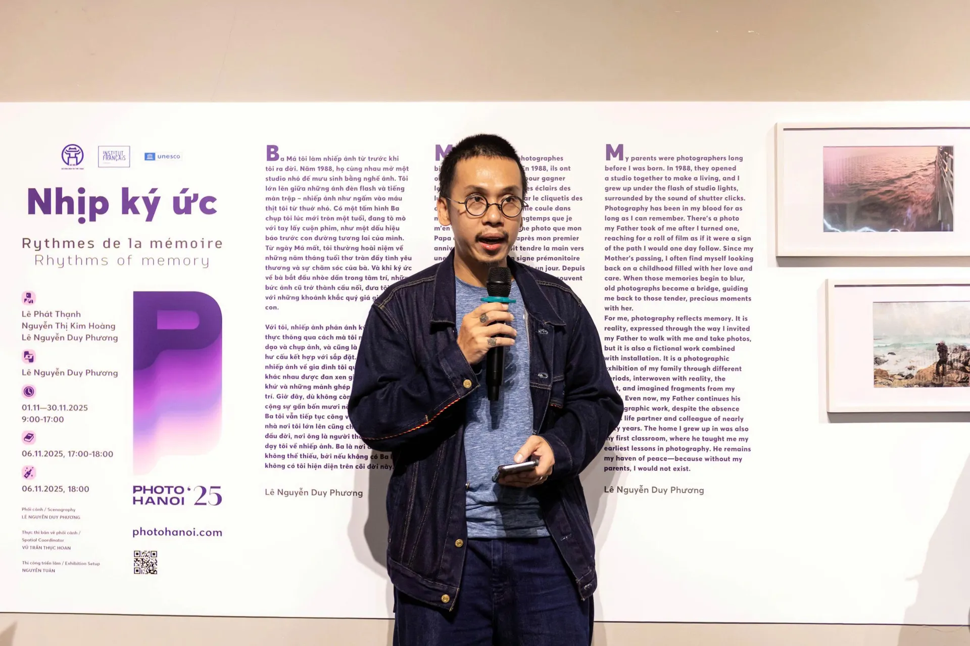 Ông Romain Busutti – đại diện Đại sứ quán Pháp tại Việt Nam bày tỏ sự trân trọng và ngưỡng mộ trước tài năng cũng như chiều sâu cảm xúc trong tác phẩm của nhiếp ảnh gia Lê Nguyễn Duy Phương. Ông nhận định, các tác phẩm trong “Nhịp ký ức” không chỉ là những bức ảnh mang tính cá nhân, mà còn là một cuộc đối thoại giữa các thế hệ, nơi người xem được kết nối với quá khứ và tự đặt câu hỏi về vai trò của ký ức trong đời sống hôm nay.