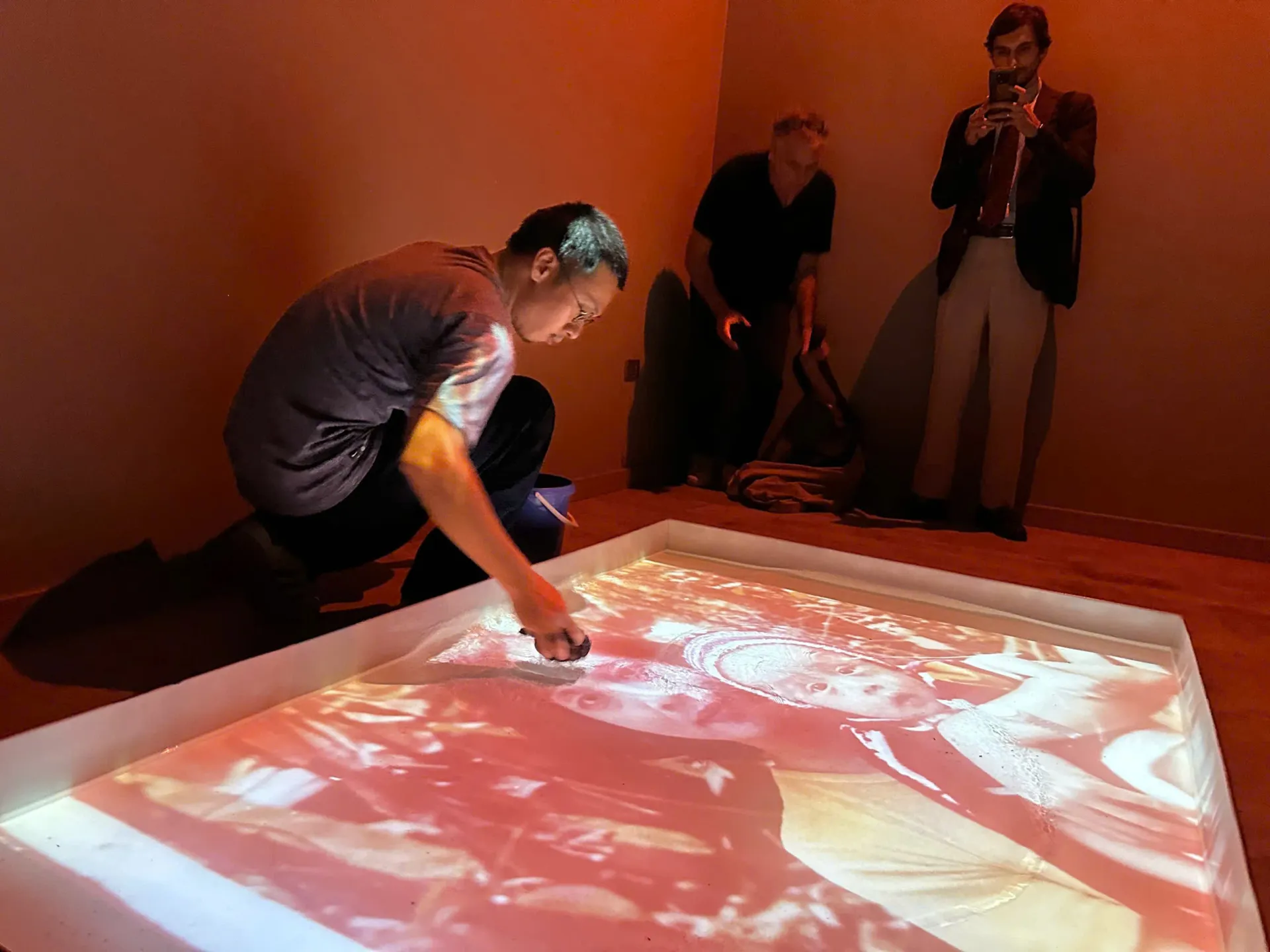 Nghệ sĩ Lê Nguyễn Duy Phương chia sẻ cùng khán giả tại triển lãm “Nhịp ký ức”.