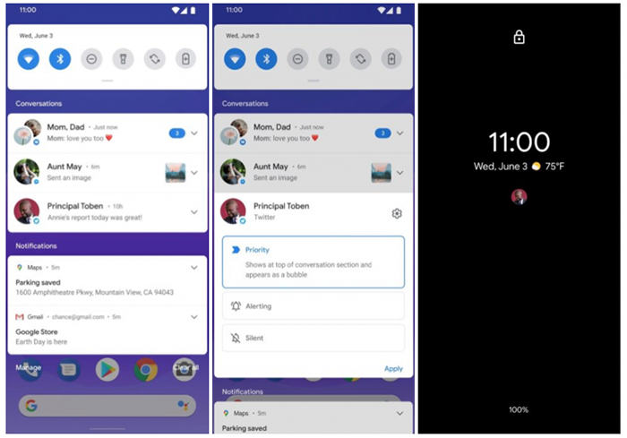 Tuy nhiên, Goolge khuyến cáo người dùng nên cài phiên bản thử nghiệm trên thiết bị Pixel mà không cài trên thiệt bị khác. Android 11 sẽ cung cấp một thông báo dành riêng cho cuộc trò chuyện, với các tính năng phong phú cho phép trả lời, nhắc nhở và khả năng đặt phím tắt cho các chủ đề trên màn hình khó.